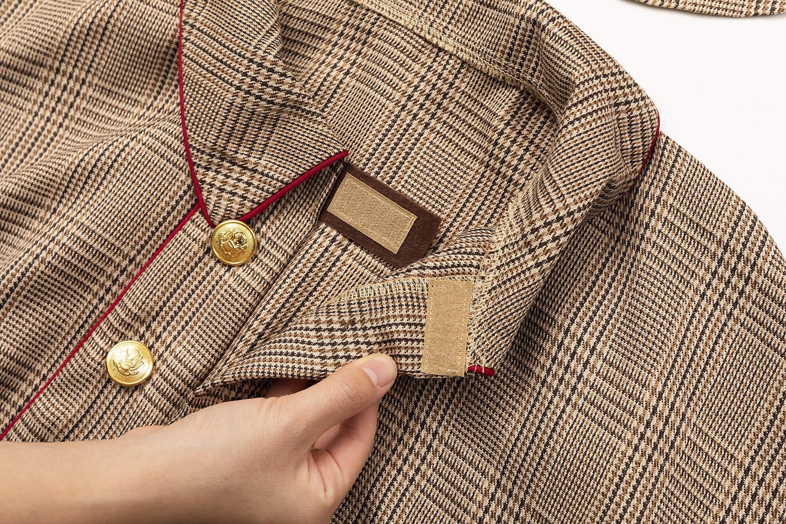 ケープの胸元は面ファスナー、スカートはウエストゴムで着やすい仕様です。