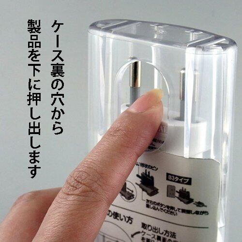 海外で日本の電気製品を使う場合の必需品。全世界9種類のコンセント形状に合わせて変形するマルチ電源変換プラグ。※南アフリカのB3Lタイプには対応しておりません。※変圧機能はありません。電圧が異なる場合は変圧器と併用してください。※日本国内では使用できません