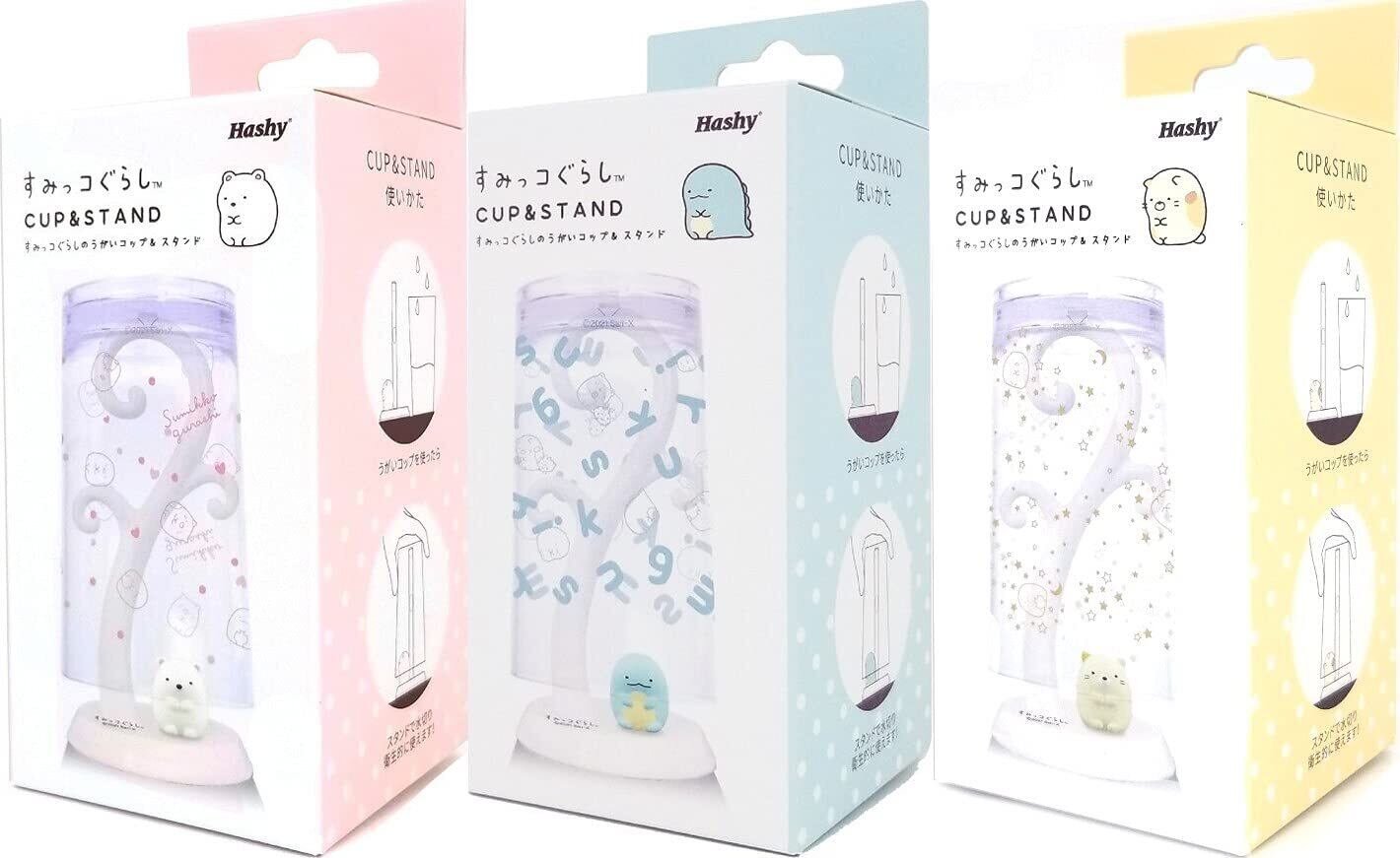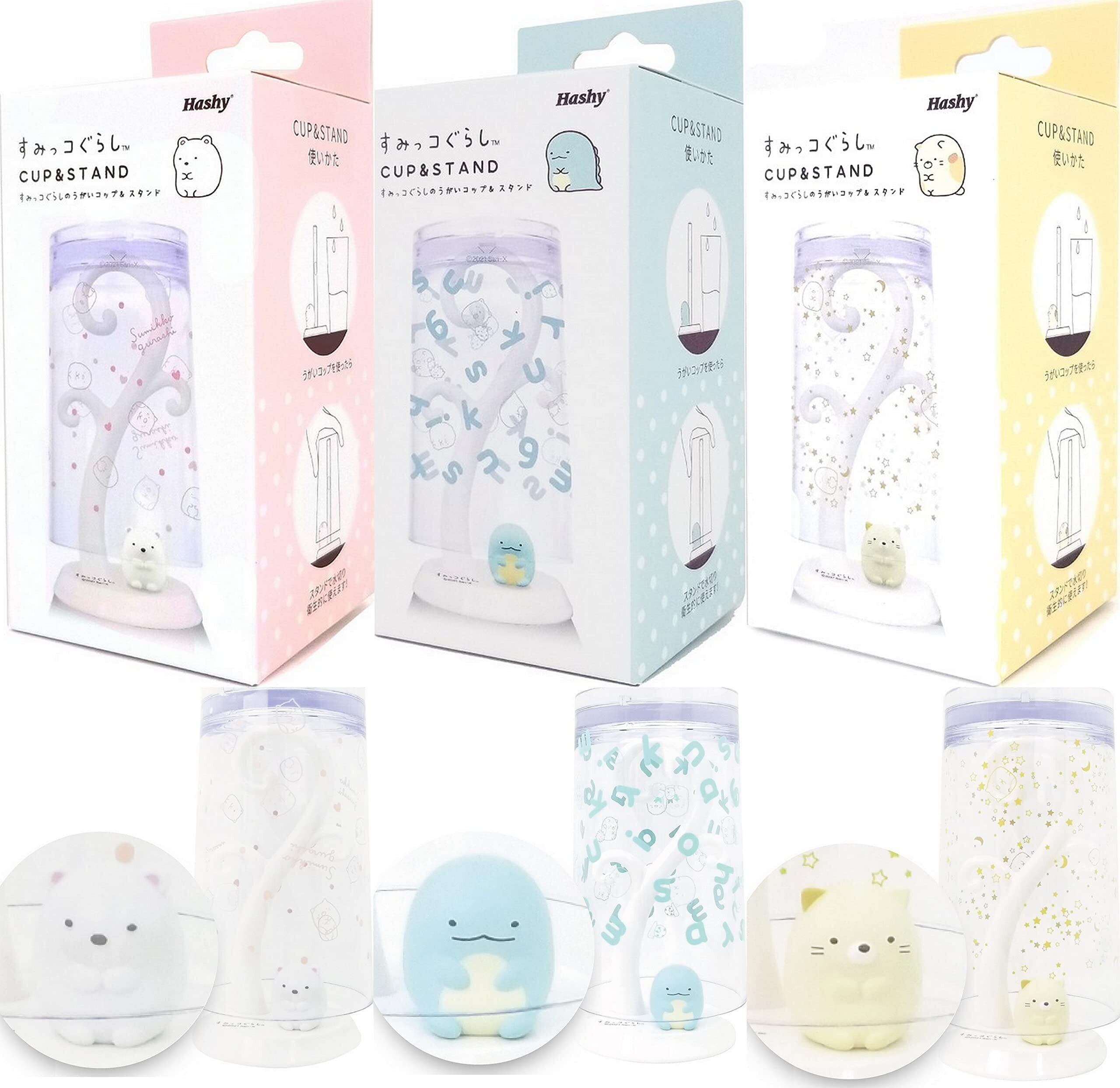 すみっコぐらしのうがいコップ & スタンド 各1個 × 3種セット ( しろくま + とかげ + ねこ ) 計3個