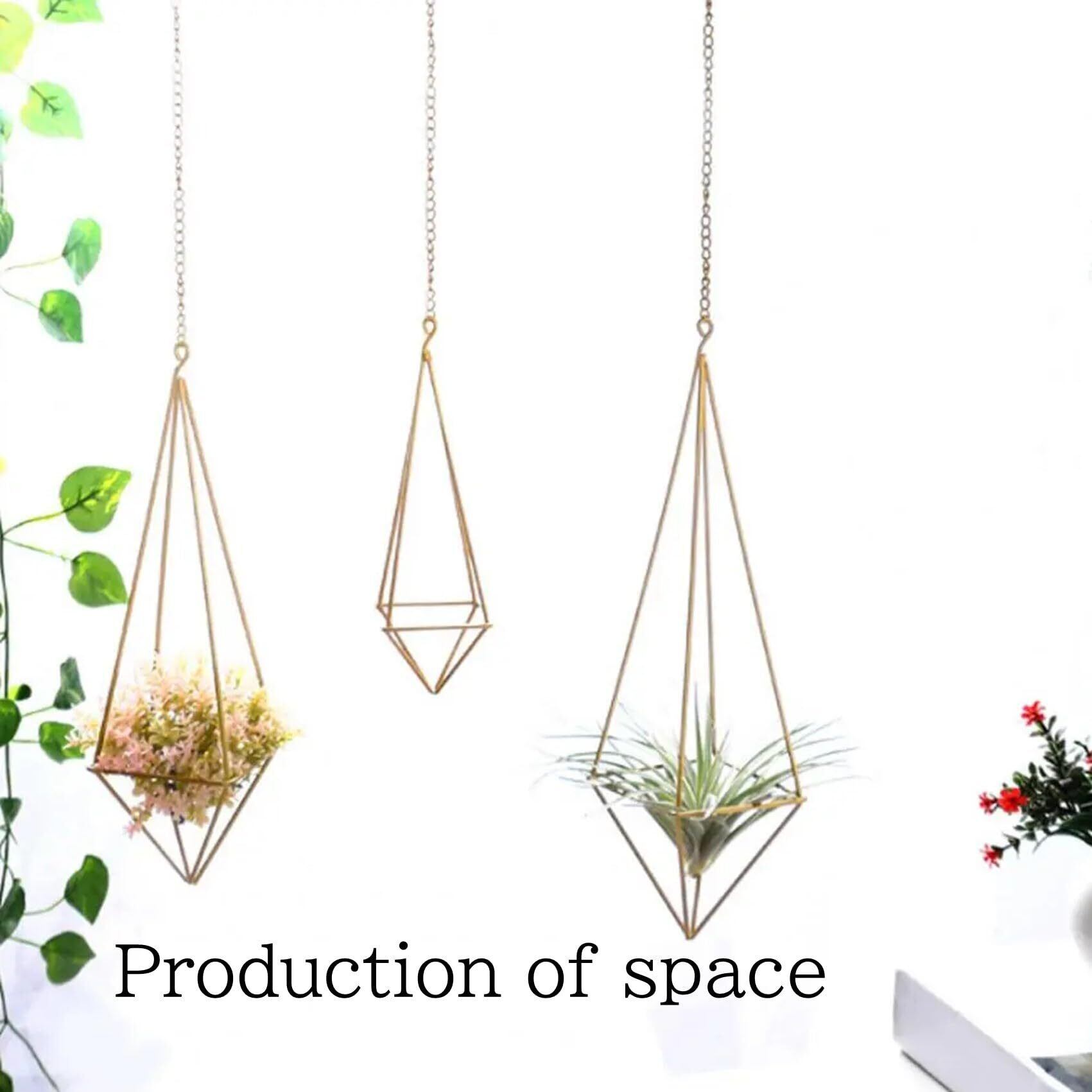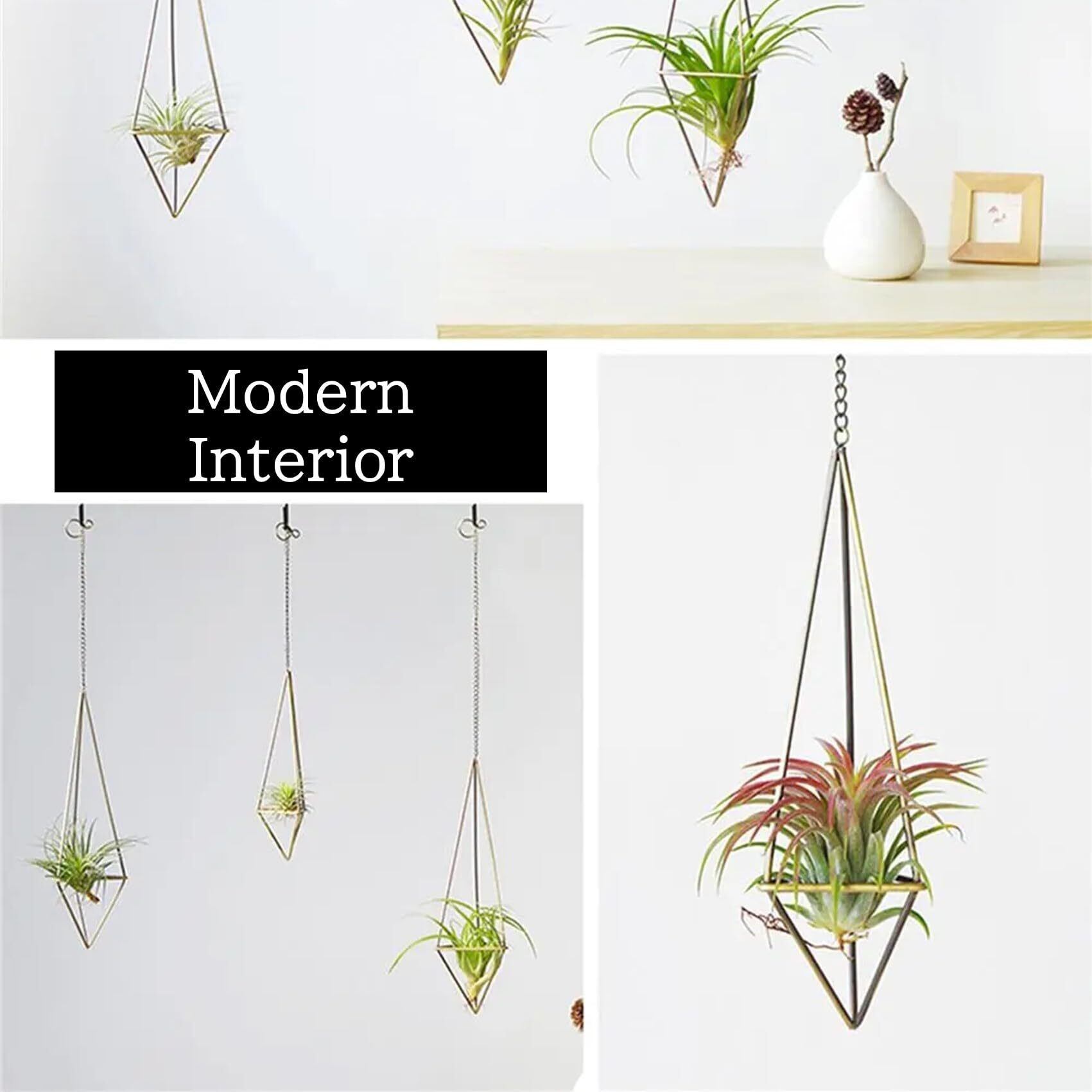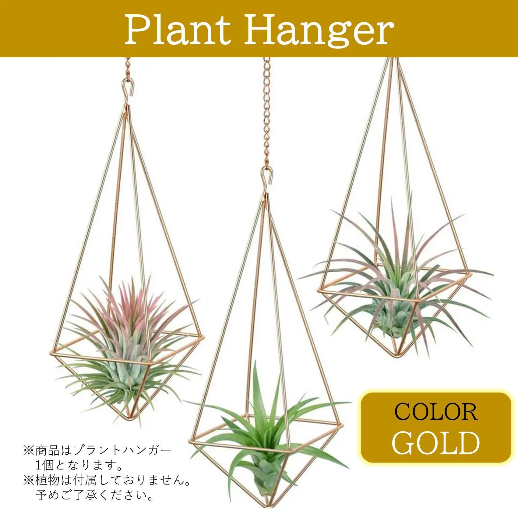 アイアンプラントハンガー(カラー:ゴールド)。ハンギングプランター、エアプランツやドライフラワーなど空間をモダンかつ華やかに彩ります。