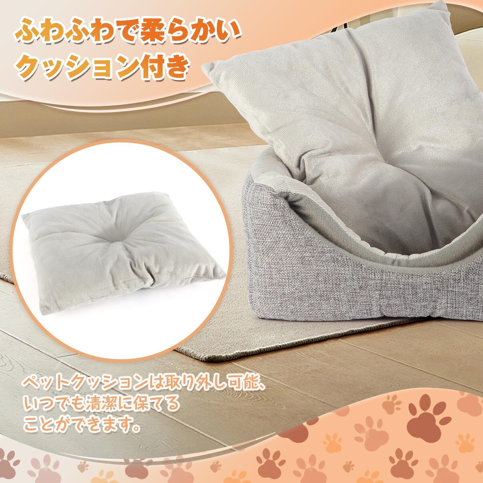 【水洗い可能】水洗える素材でいつでもきれいに清潔に保てます、汚れてしまっても安心汚れや臭いがついてもすぐ清潔に保ことができます。愛犬・愛猫にいつでも清潔で快適な生活を過ごせます。(付属しているクッションはまるで洗濯機であらう可能。ベッド本体は手洗いがお勧めです。)