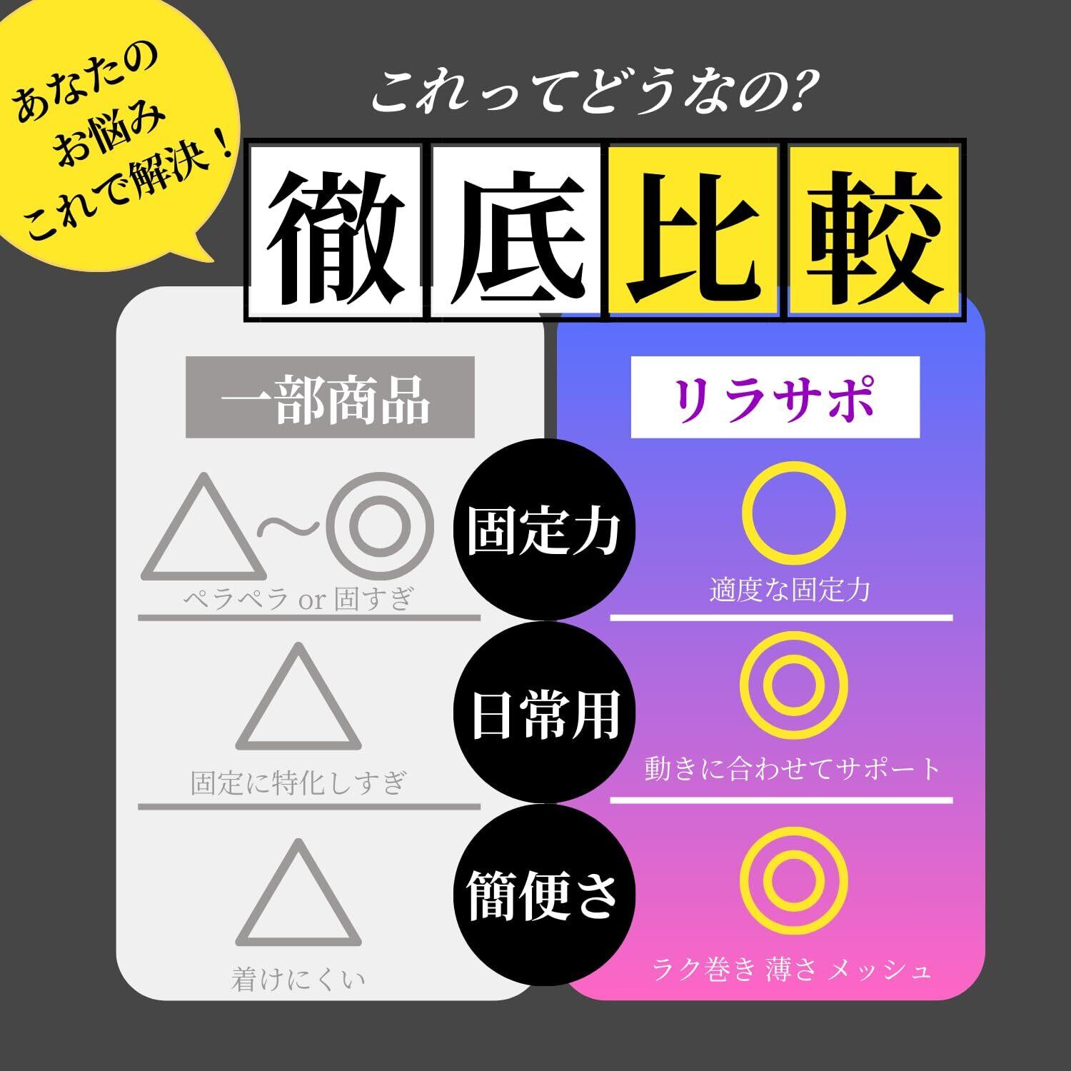 リラサポ手首サポーターは、薄手のデザインでありながら高い固定力を実現し、男女兼用で左右兼用のユニバーサルなサポートを提供します。育児やスポーツ、オフィスでの使用にも最適で、あなたの手首をしっかりと守ります。