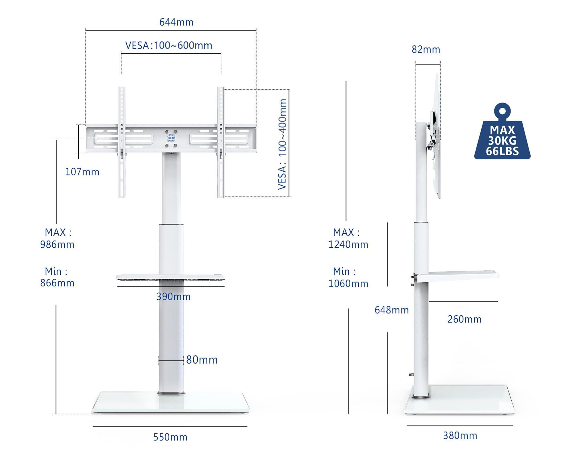 FITUEYES テレビスタンド 32~60インチ対応 棚付き 壁寄せテレビスタンド 高さ調節可能 ラック回転可能 ホワイト