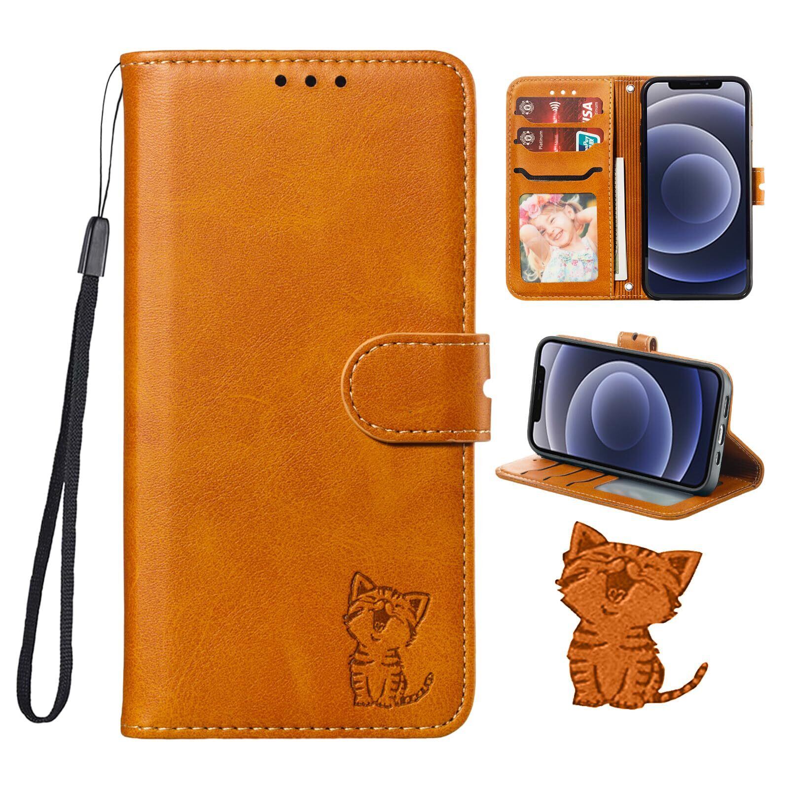 【ユニークなデザイン】シンプルながらも機能性も備わったデザインです。型押しの可愛い猫のモチーフと上品なレザーの組み合わせるケースであり、それに上下に二つのストラップ穴もあり、お好きなタッセルとストラップとかお付けられます、簡単こそクラッシクの上品を引き出せる、手作りの高級感ある色合いでちょっぴり大人なスマホケース。学生にも相応できるし、ワンポイントは笑顔猫であり、この手帳型ケースをギフトとしても最適です。
