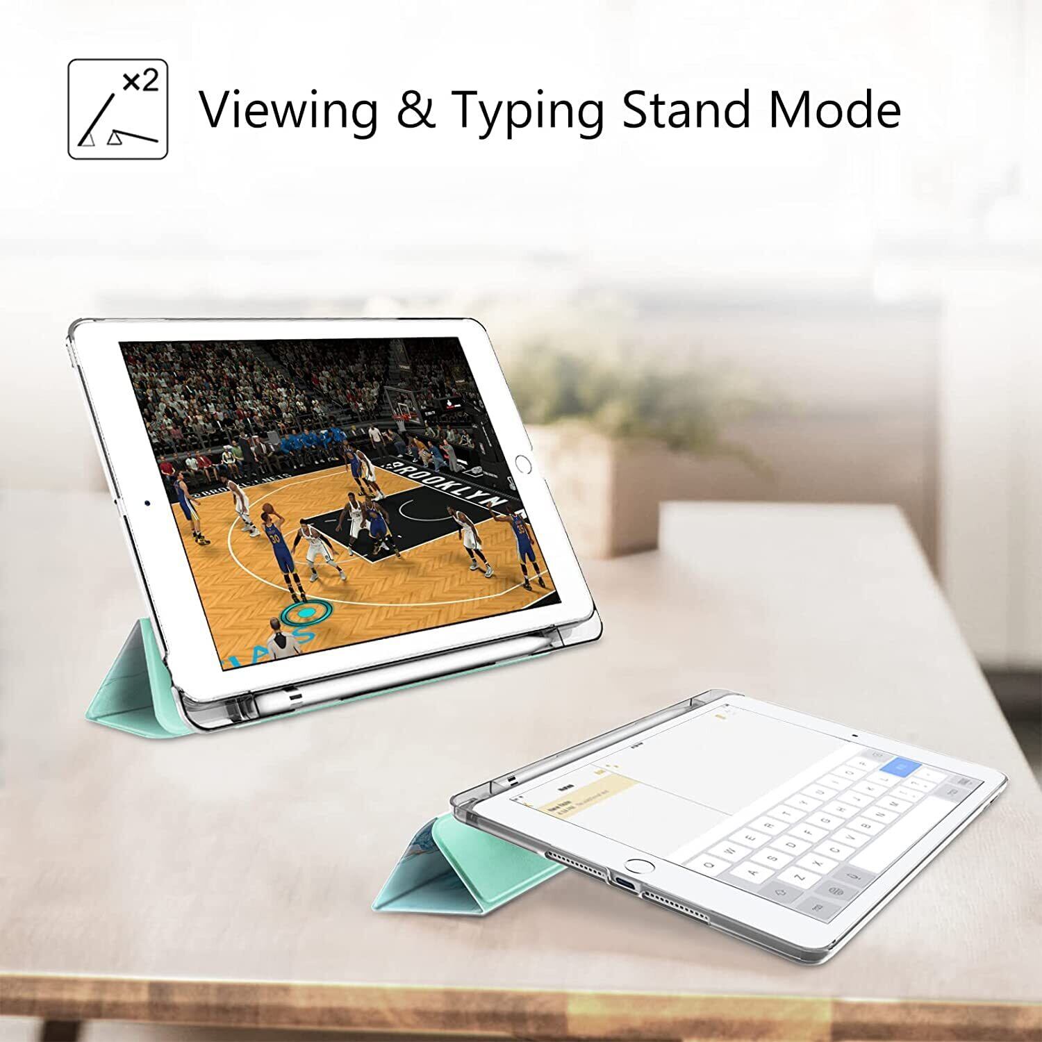 Fintie iPad 9.7 2018 2017 ケース ペンホルダー付き Apple Pencil 収納可能 三つ折スタンド スリープ機能 軽量 薄型 半透明 バックカバー iPad 9.7 インチ 第6世代 / 第5世代 対応 (モデル番号A1893、A1954、A1822、A1823)(柄 X マーブルグリーン)