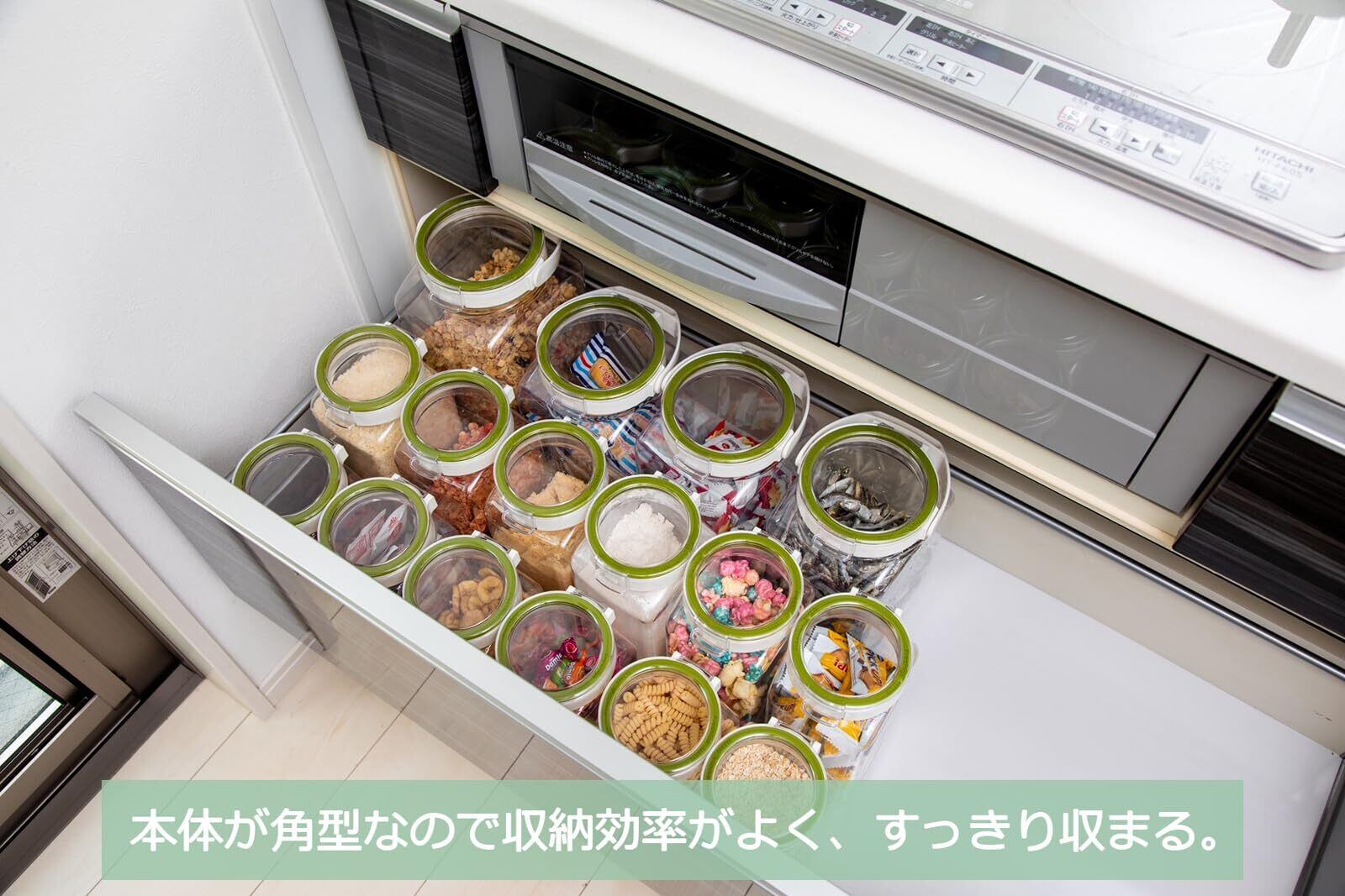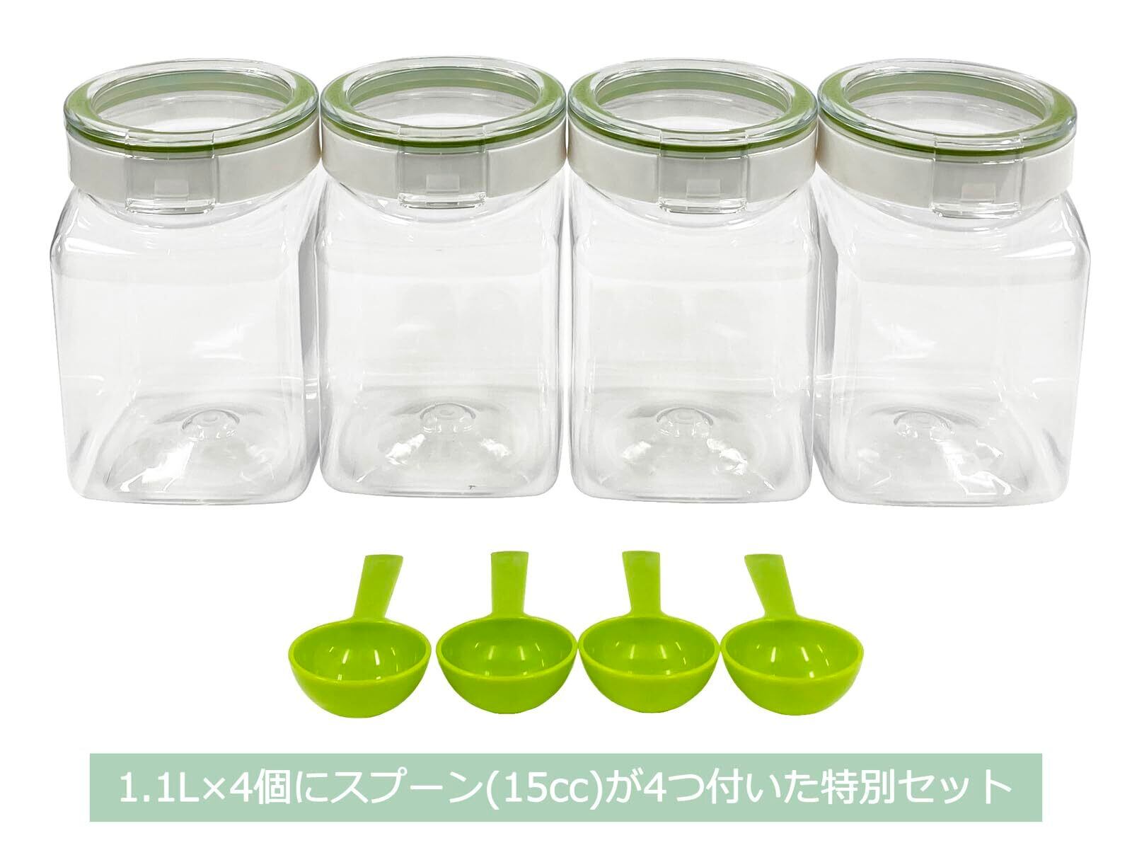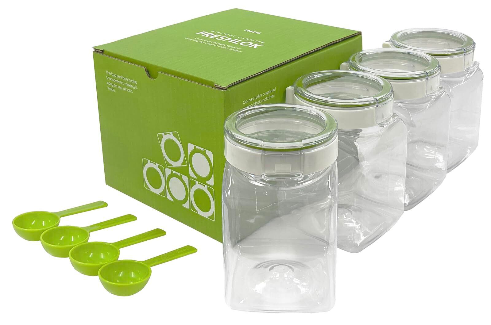 【Amazon.co.jp限定】 タケヤ化学工業 TAKEYA フレッシュロック FRESHLOK 角型 1.1L グリーン 4個セット スプーン付き 保存容器 高気密性 ワンタッチ開閉