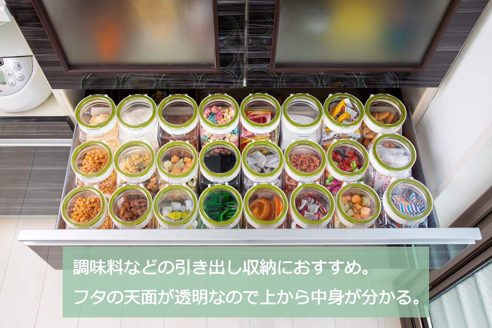 素材・材質:本体/PET (ポリエチレンテレフタレート) 耐熱温度60度 耐冷温度-20度、中フタ/PP (ポリプロピレン)耐熱温度120度 耐冷温度-20度、上フタ/飽和ポリエステル樹脂 耐熱温度100度 耐冷温度-20度、パッキン/シリコーンゴム 耐熱温度140度 耐冷温度-20度