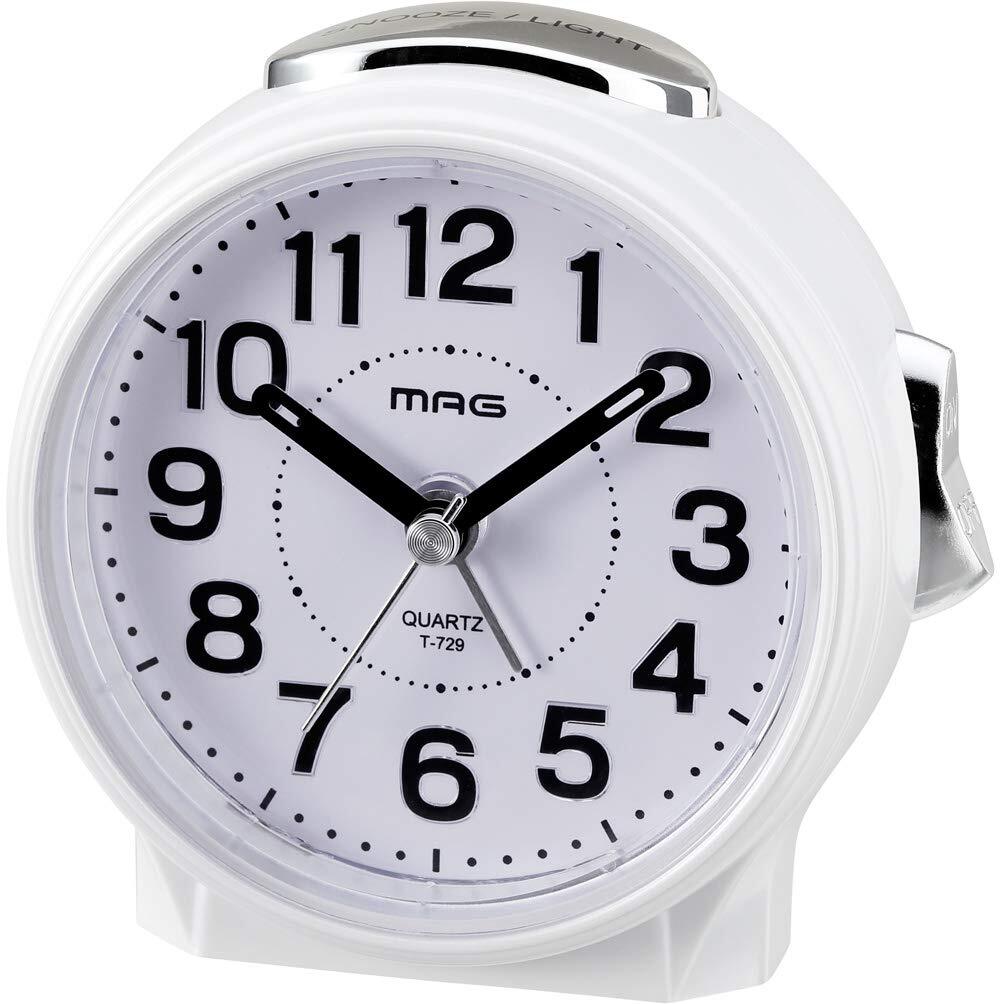 MAG(マグ) 目覚まし時計 置き時計 アナログ 静音 連続秒針 電子音 アラーム スヌーズ ライト ホワイト ブルーブライト T-729 WH-Z ノア精密