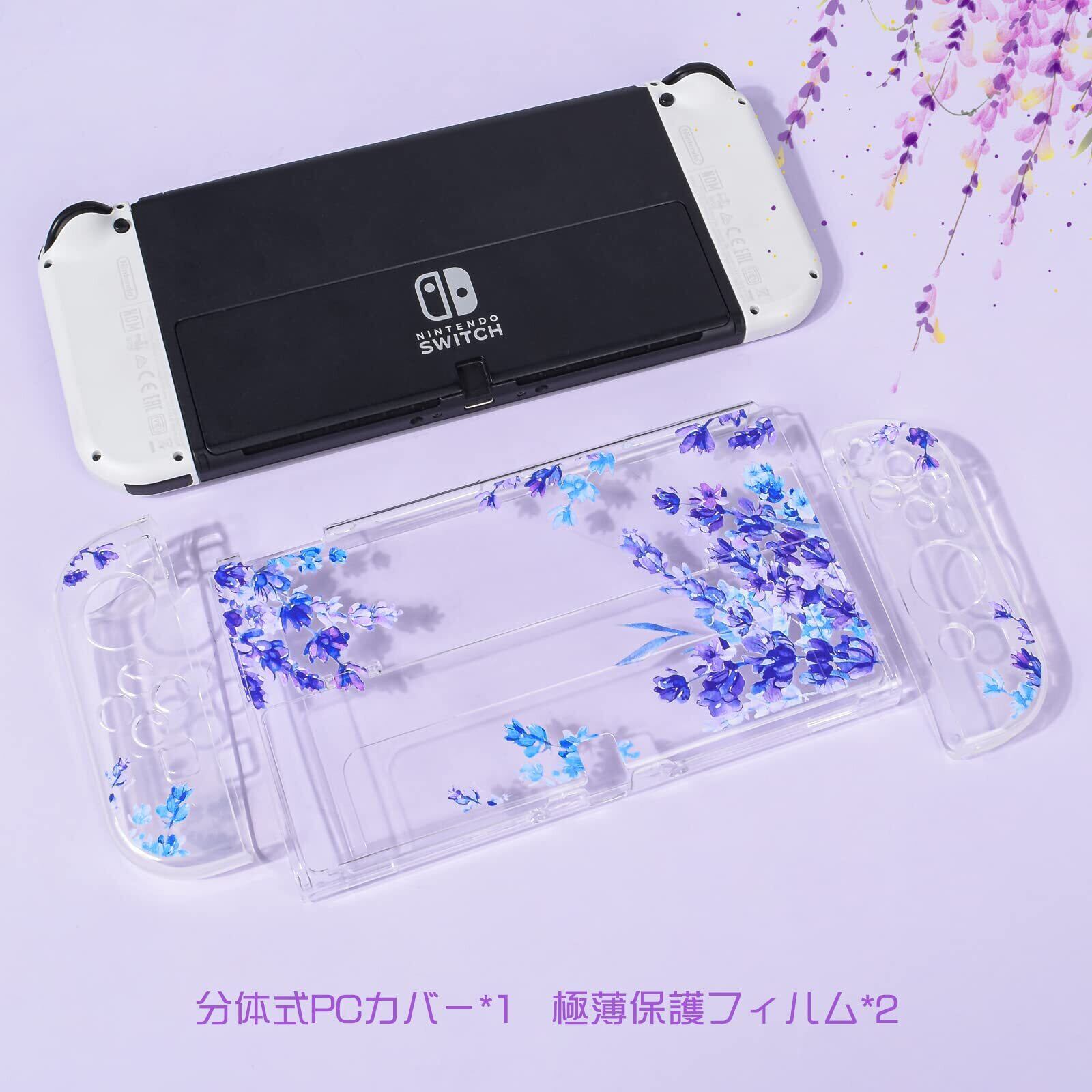 DLseego Switch OLED 用 ケース ニンテンドースイッチ有機el カバー クリアOLED 用 ケース 有機elモデルケース 分離式カバー TPU素材 透明スイッチカバー 超軽量 耐衝撃 傷つけ防止 全面保護 取り外し簡単 押し花 可愛い パープルラベンダー