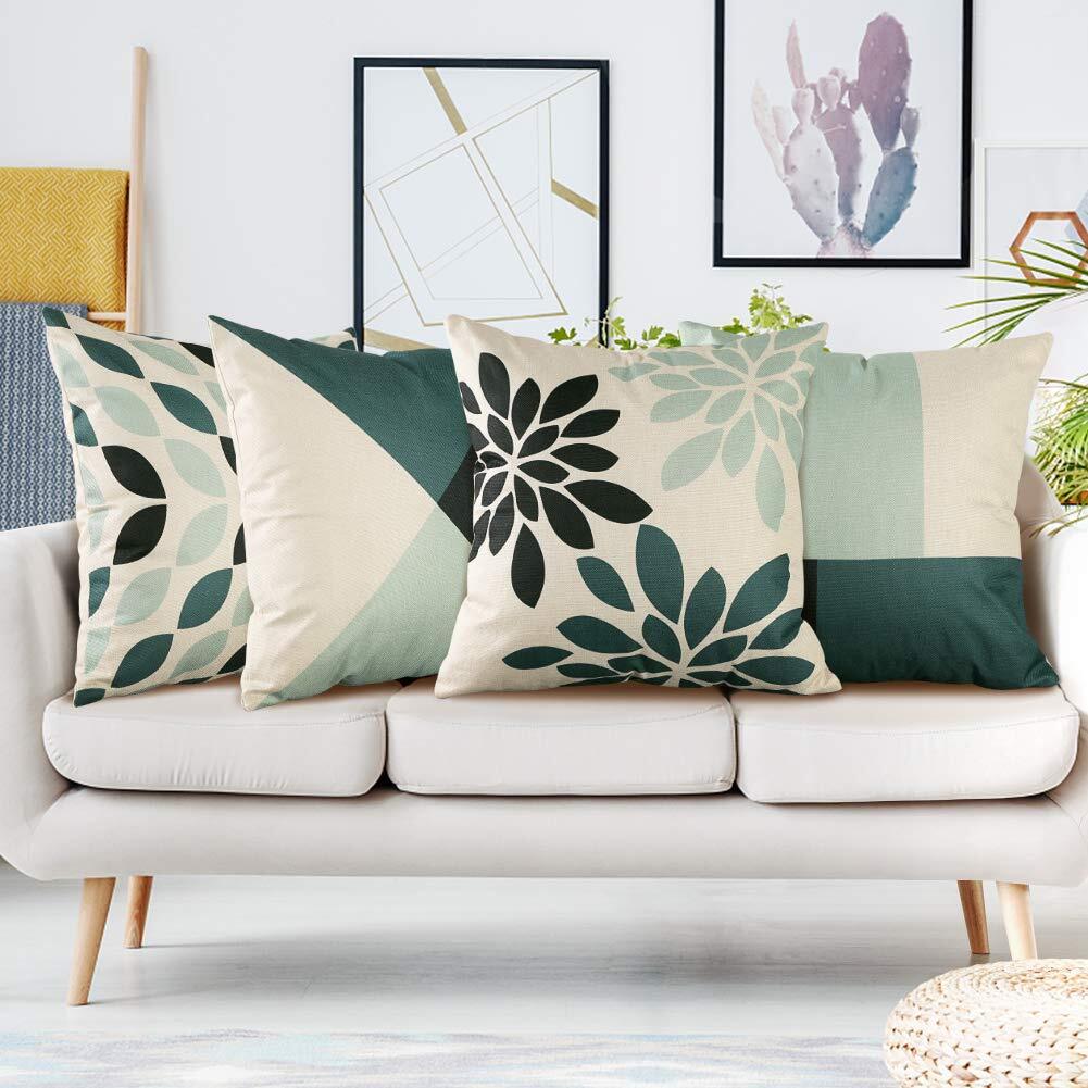 OTOSTAR クッションカバー 50x50cm 北欧 リネンっぽい 4枚セット おしゃれ 可愛い 柄 綿とリネン 亜麻 ソファー用クッションカバー ソファ背当て 装飾枕カバー 座布団カバー(グリーン, 50x50)