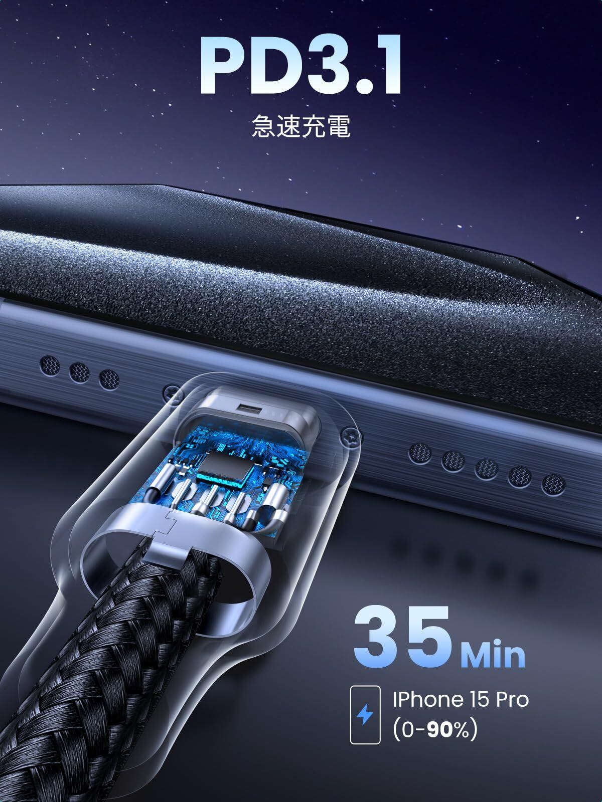 ● 高速かつ強力な充電を実現! ● UGREENのPD3.1 240W USB Cケーブルは、240Wの超急速充電に対応しています。最新のiPhone、MacBook、iPad、さらには様々なUSB Type Cデバイスにも信頼性の高い充電を提供し、迅速な充電を可能にします。日常使いに最適です!