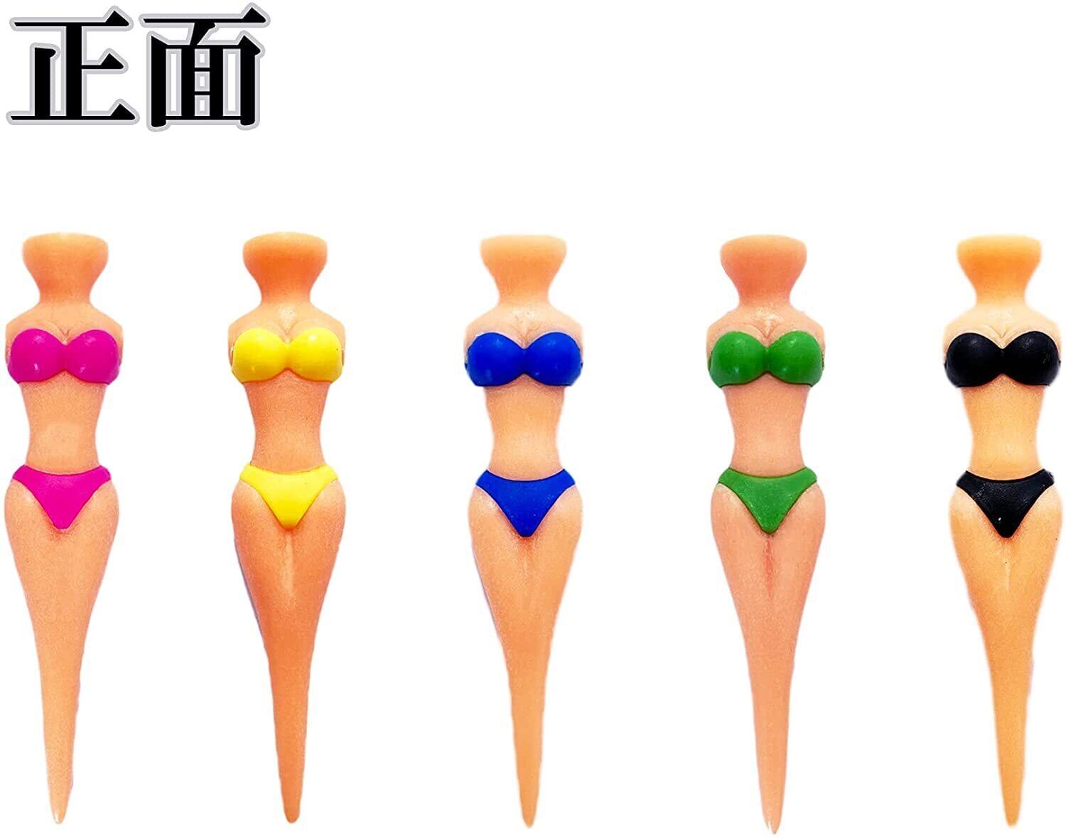 VIEAURA ゴルフティー ビキニ 5色10本セット レディー セクシー 面白グッズ ゴルフ用品 ティー ジョーク ギフト プレゼント コンペ 景品 小物 うけ狙い プラスチック ブラック ピンク イエロー ブルー グリーン