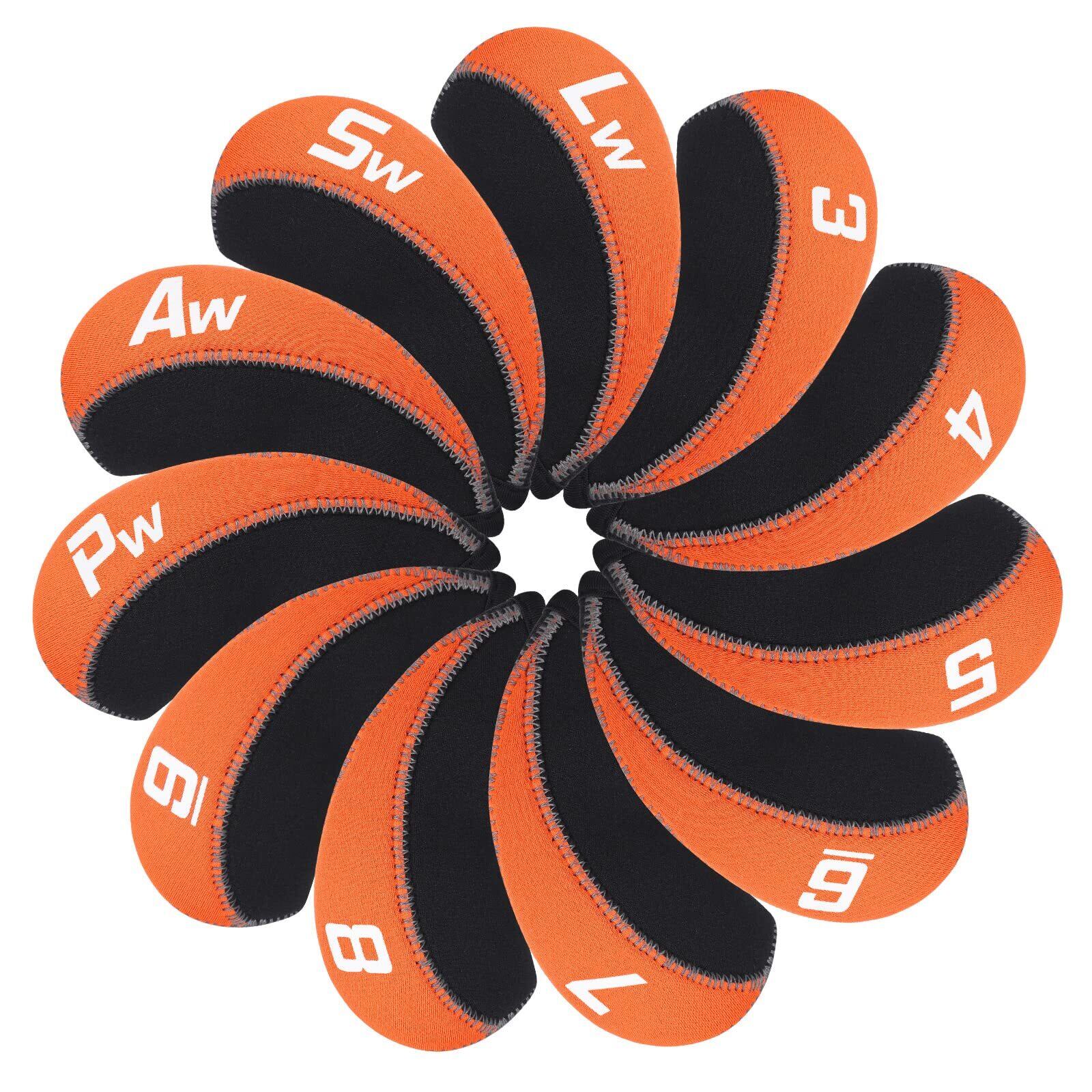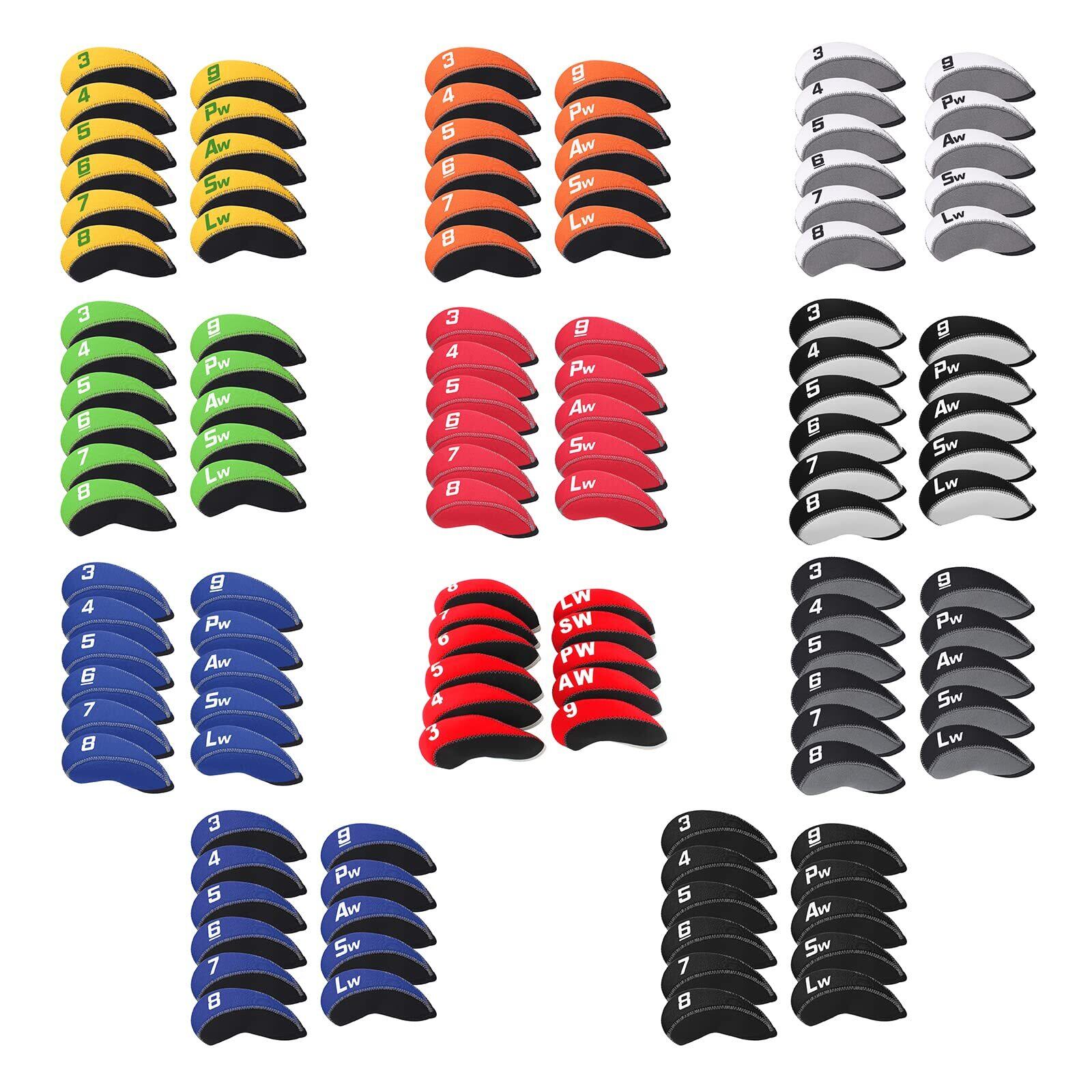 ゴルフアイアンカバー ヘッドカバー 11枚入り(3~9、P、A、S、L) セット販売 ネオプレン製 11スタイル(オレンジ&ブラック/ブルー&ブラック/グリーン&ブラック/ブラック&ホワイト/ブラック&グレー/ブラック/レッド&ブラック/イエロー&ブラック/レッド/グレー&ホワイト/ブルー)
