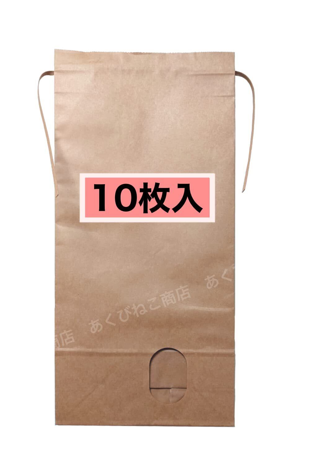 米袋 10kg用 10枚 アサヒパック クラフト紙 無地 窓有り 紐つき 2つ折り発送 Amazon倉庫発送