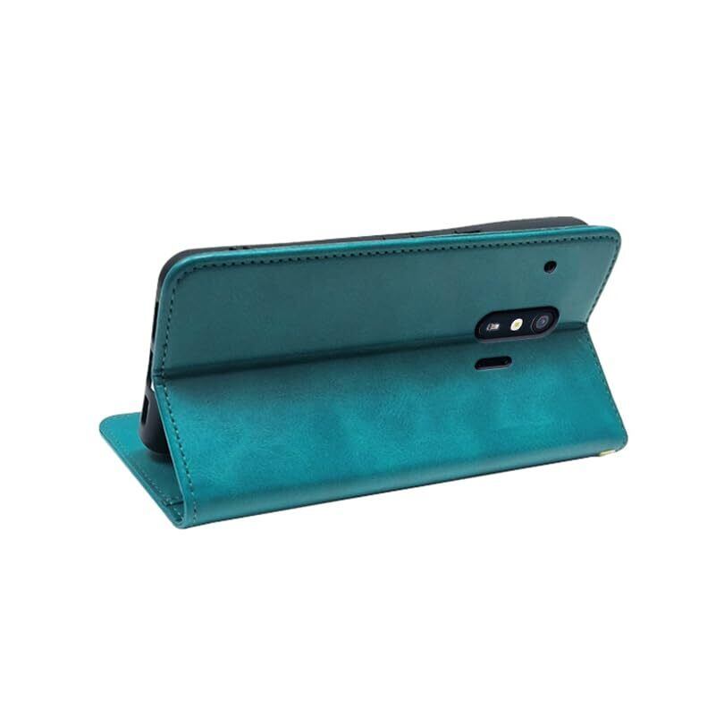 らくらくスマートフォン me F-01L / F-42A ケース 手帳型 カバー PUレザー カード収納 財布型 耐衝撃 ケース マグネット スタンド機能付き 5色 (グリーン)