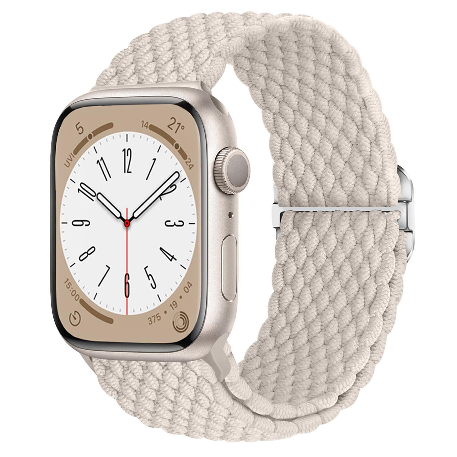 コンパチブル Apple Watch バンド ブレイデッドソロループ ベルト 無段階に調整な緩み防止バックル デザイン ファッションで快適な伸縮性で通気性の良いストラップ アップルウォッチシリーズ SE 10 9 8 7 6 5 4に対応 (42mm 41mm 40mm, スターライト)