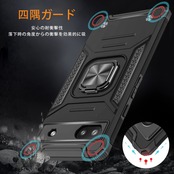 Google Pixel 6A ケース リング 耐衝撃 カバー 薄型 tpu 米軍MIL規格 衝撃吸収 指紋防止TPU+PC材質 滑り止め リング付き車載ホルダー対応 落下防止 スタンド機能 傷つけ防止 全面保護 一体型 カバー 黒08004-Pixel 6a-01