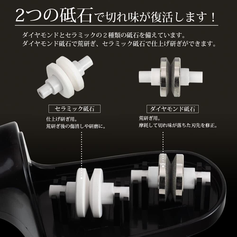 荒研ぎ(ダイヤモンド)・仕上げ研ぎ(セラミック)のダブル設計で切れ味が回復。