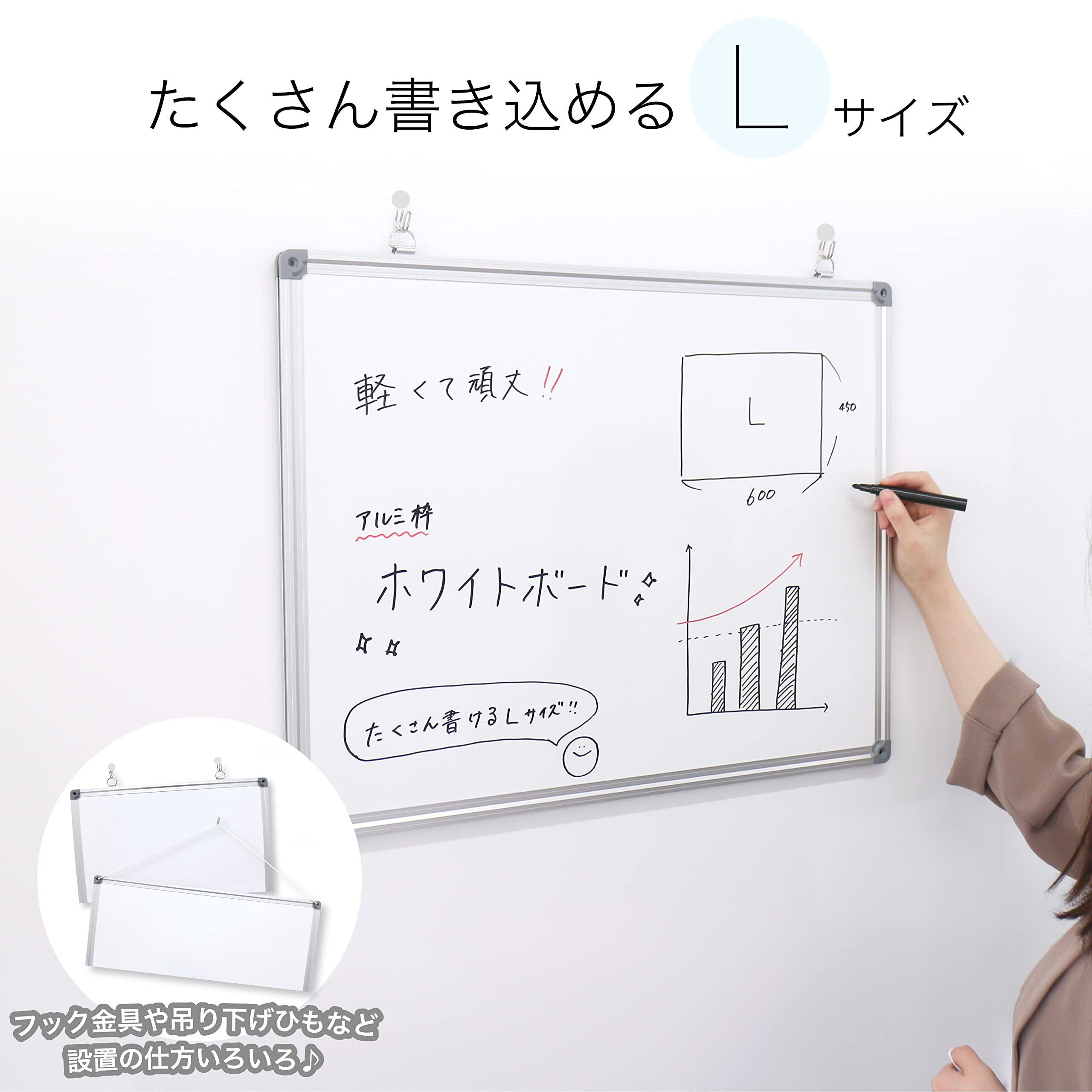アスミックス(Asmix) アスカ ホワイトボード アルミ枠 AWB057 L 600×450mm 壁掛け 厚さ11mm スライドトレー