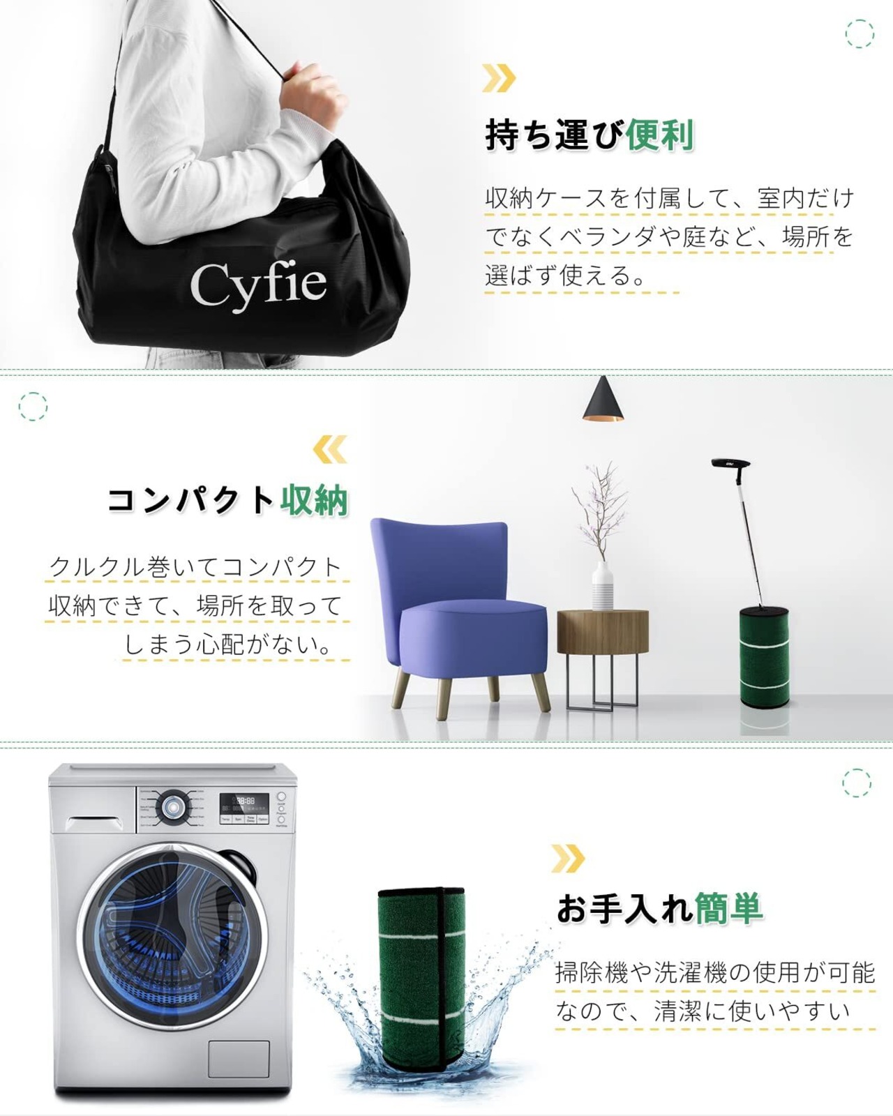 ● 自宅で簡単にスイング練習! ● Cyfieのゴルフパター練習マットは、長さ約282cmのロングサイズで、パッティング練習に最適です。距離感を鍛えるための理想的なアイテムで、家庭やオフィスでも気軽に使えます。