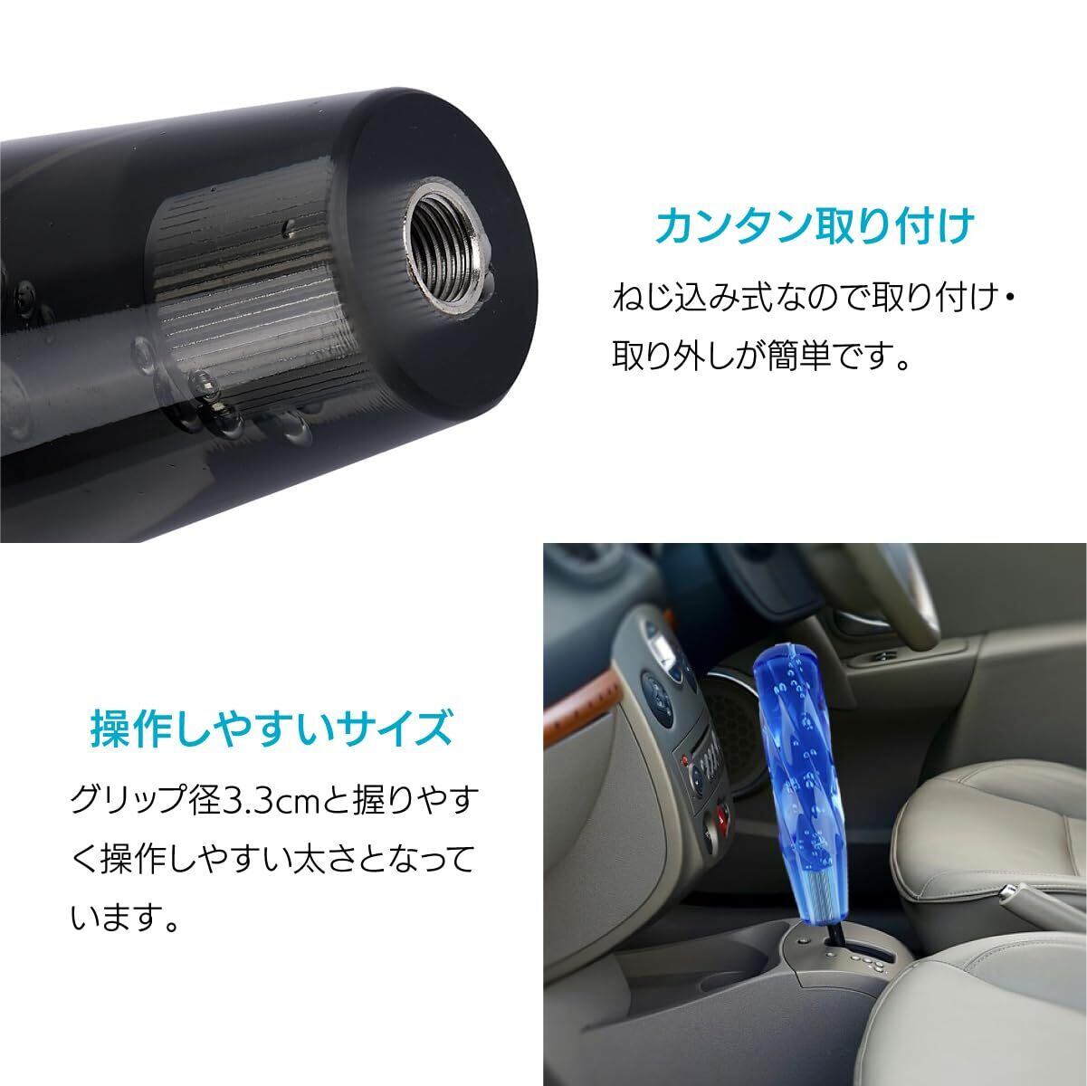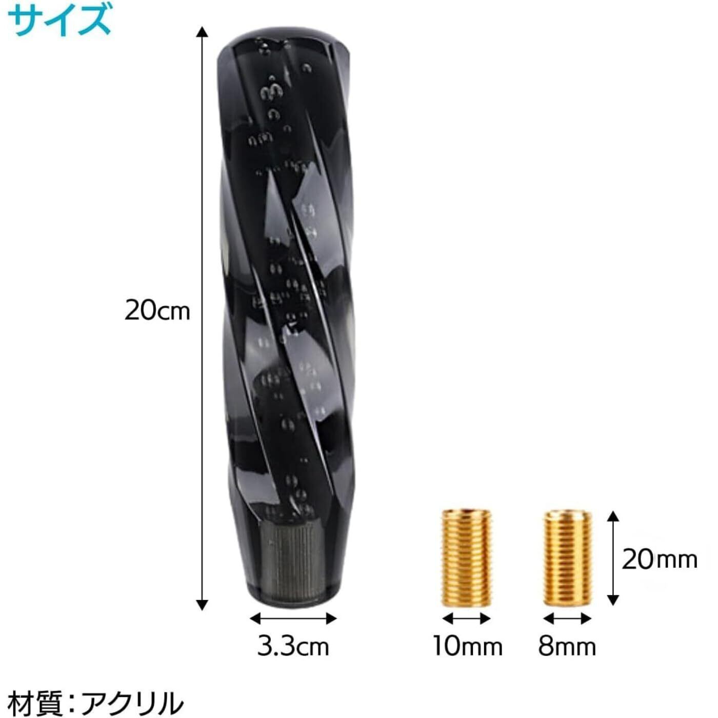 【仕様】サイズ:長さ20cm×直径3.3cm、ネジ径12mm / アダプターサイズ:直径10mm×長さ12.5mm、直径8mm×長さ12.5mm / 材質:アクリル / カラー:クリア / セット内容:シフトノブ×1、変換アダプター×2 ※モニターの環境等により、色の見え方に若干差が生じる場合がございます。