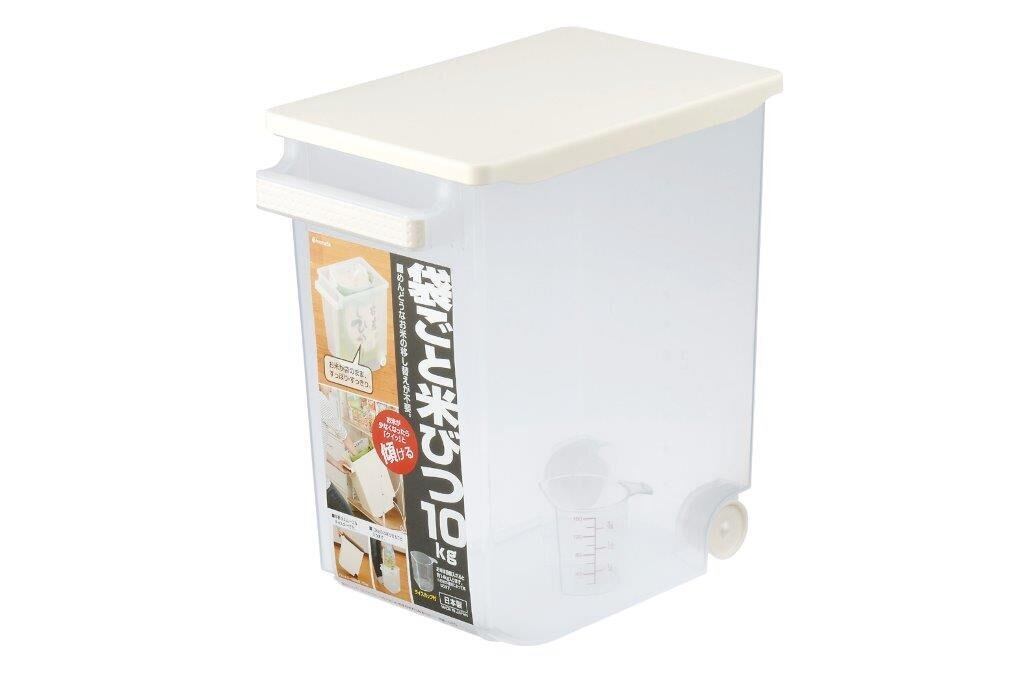 ●めんどうなお米の移し替えが不要!お米袋を丸ごとすっぽり入れて使える米びつ●10kgのお米を、袋のまますっぽりと入れることができます●後部にはキャスターがついていて、重い米びつの移動も簡単●残りのお米が少なくなったら、簡単に傾けられます