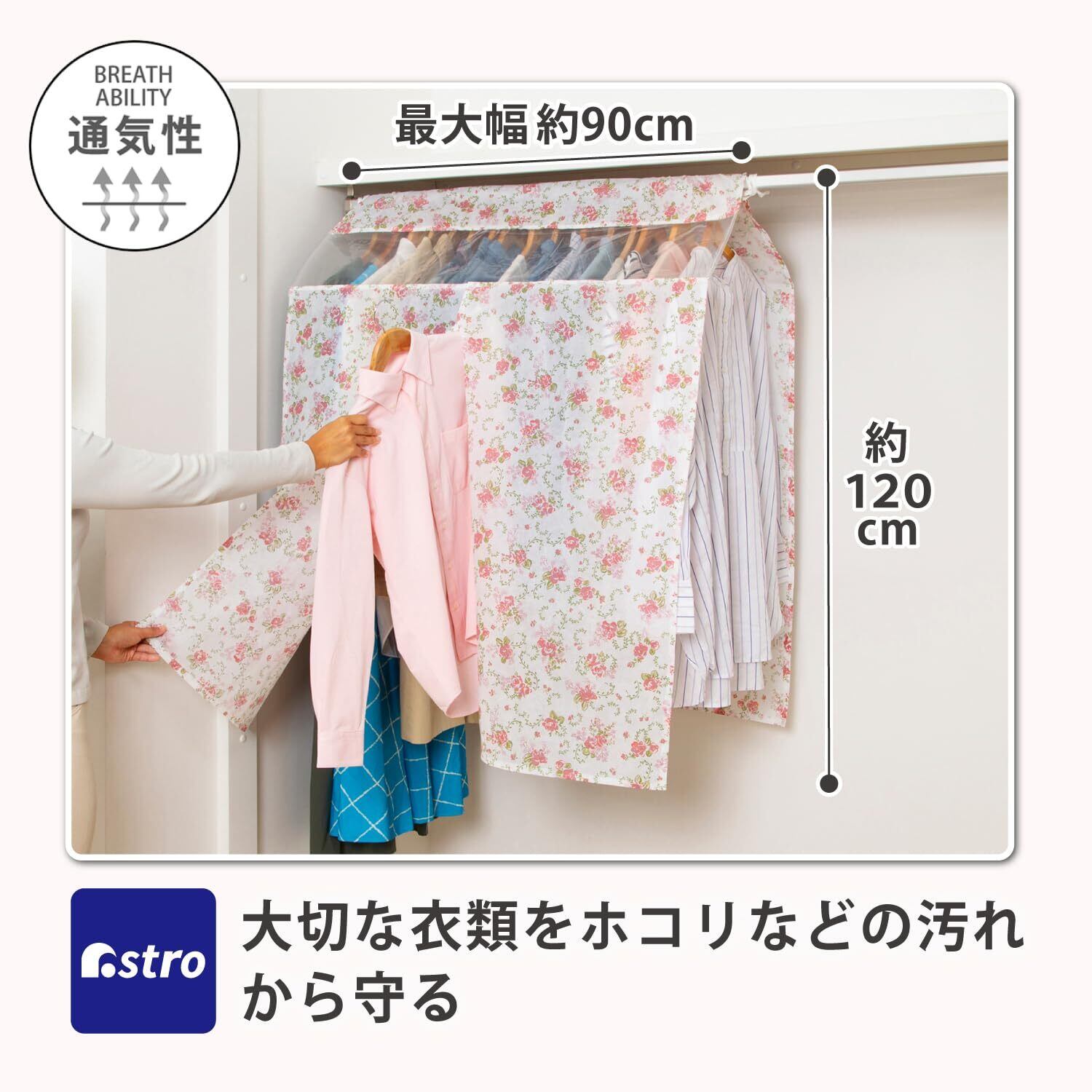 アストロ ハンガーラックカバー ホワイト 花柄 ローズ柄 幅90cm 通気性の良い不織布製 衣類カバー 洋服カバー パイプハンガー 埃除け センタースリット 出し入れスムーズ 洋服が見える透明窓 ずり落ち防止固定用ひも付き 防塵 クローゼット 吊り下げ 173-06