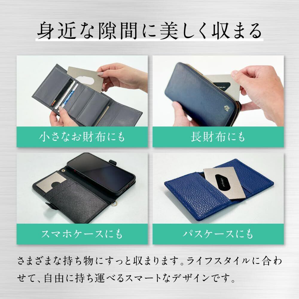 素材には、厚み0.3mmに加工された純チタンを使用し、一般的な名刺(厚み0.25mm程度)3枚をしっかりと守ります。