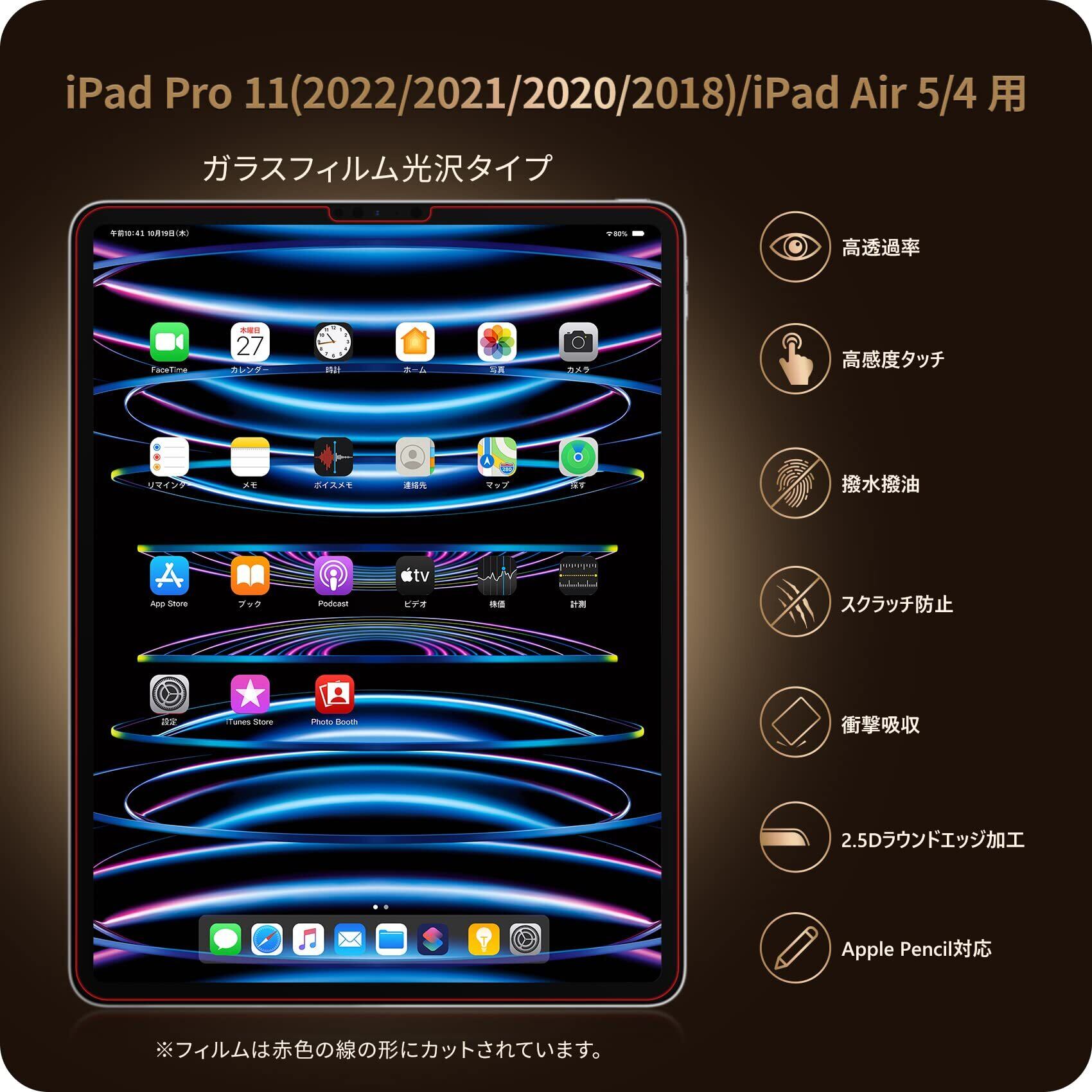 高透過率:厚さ0.33mmの超薄型で、透過率は99.99%。驚くほど高い透明度を誇っており、画面の鮮明さや美しさを損なわずにiPad Pro11本来の美しい画面をお楽しみいただけます。画面上の操作も違和感なくスムーズに行えます。