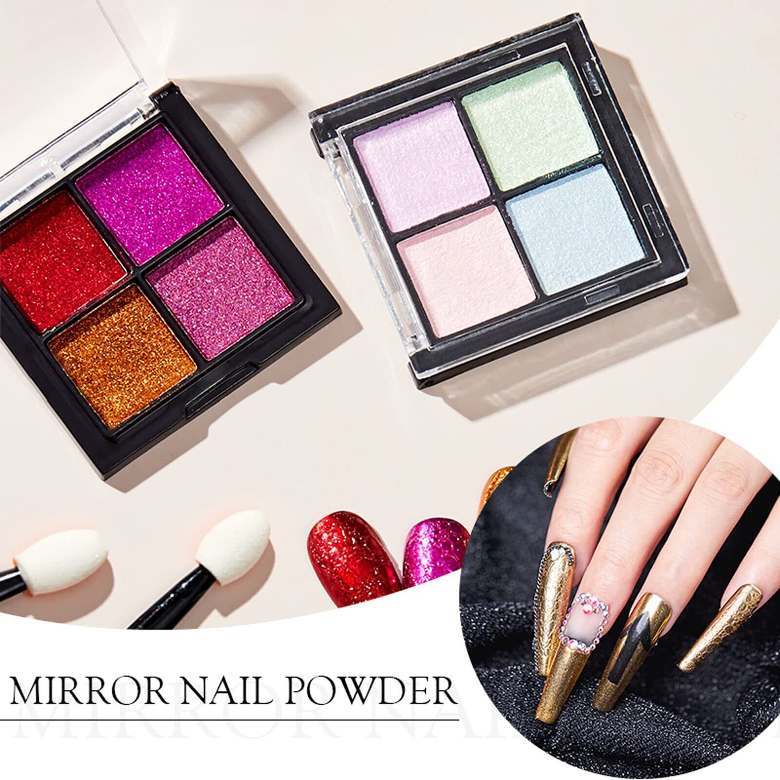 ミラーパウダー パレット 固形 ネイルパウダー 4色セット ミラーネイル パウダー ゴールド シルバー ピンク ネイルアート ジェルネイル レジン メタリックパウダー チップ付き (A)