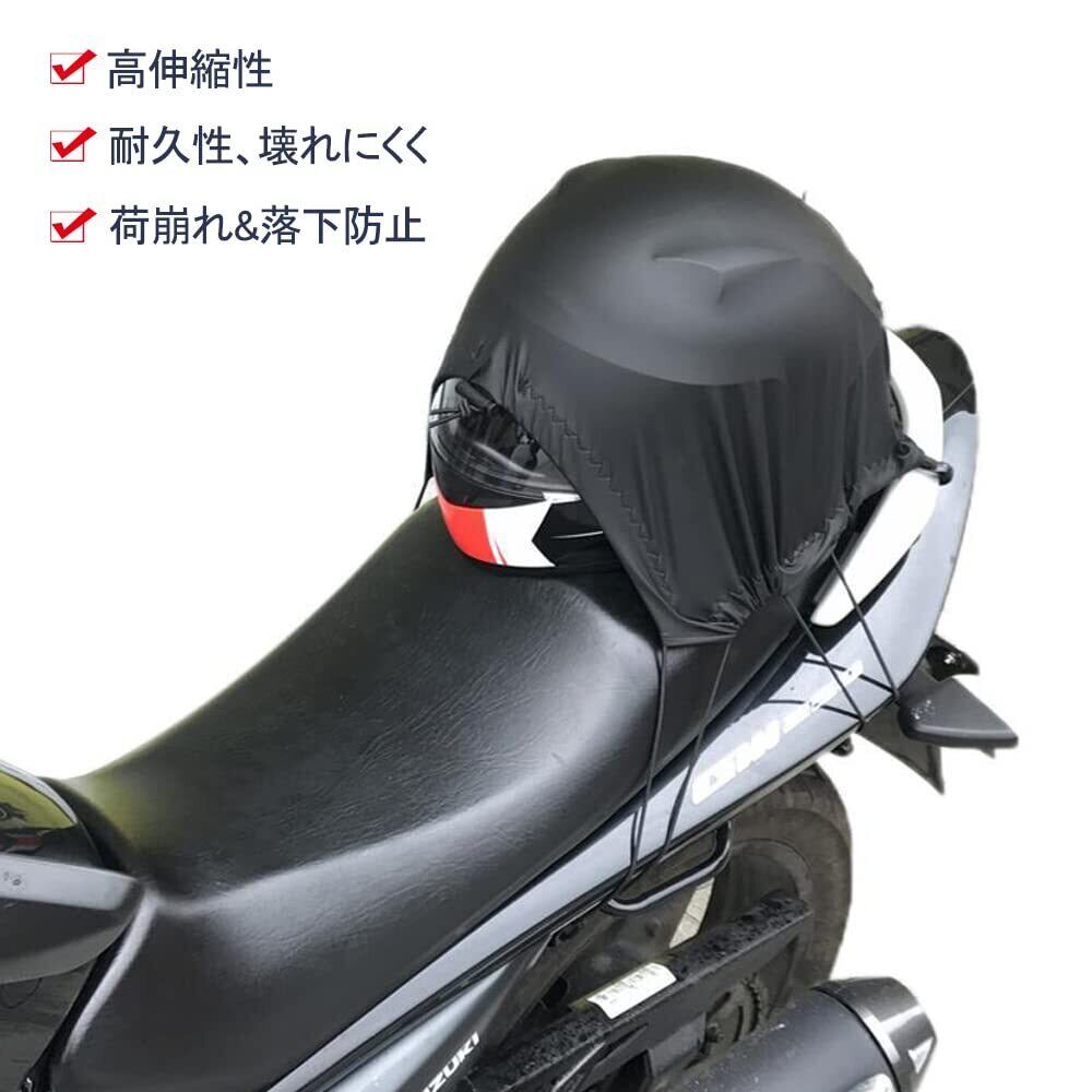● 高耐久性を誇るゴムひも! ● 本商品には、高い耐久性を持つゴムひもが使用されており、強い引っ張りにも耐える設計です。6個のフックが付属しているので、あらゆるスタイルのバイクや車に簡単に取り付けることができます。