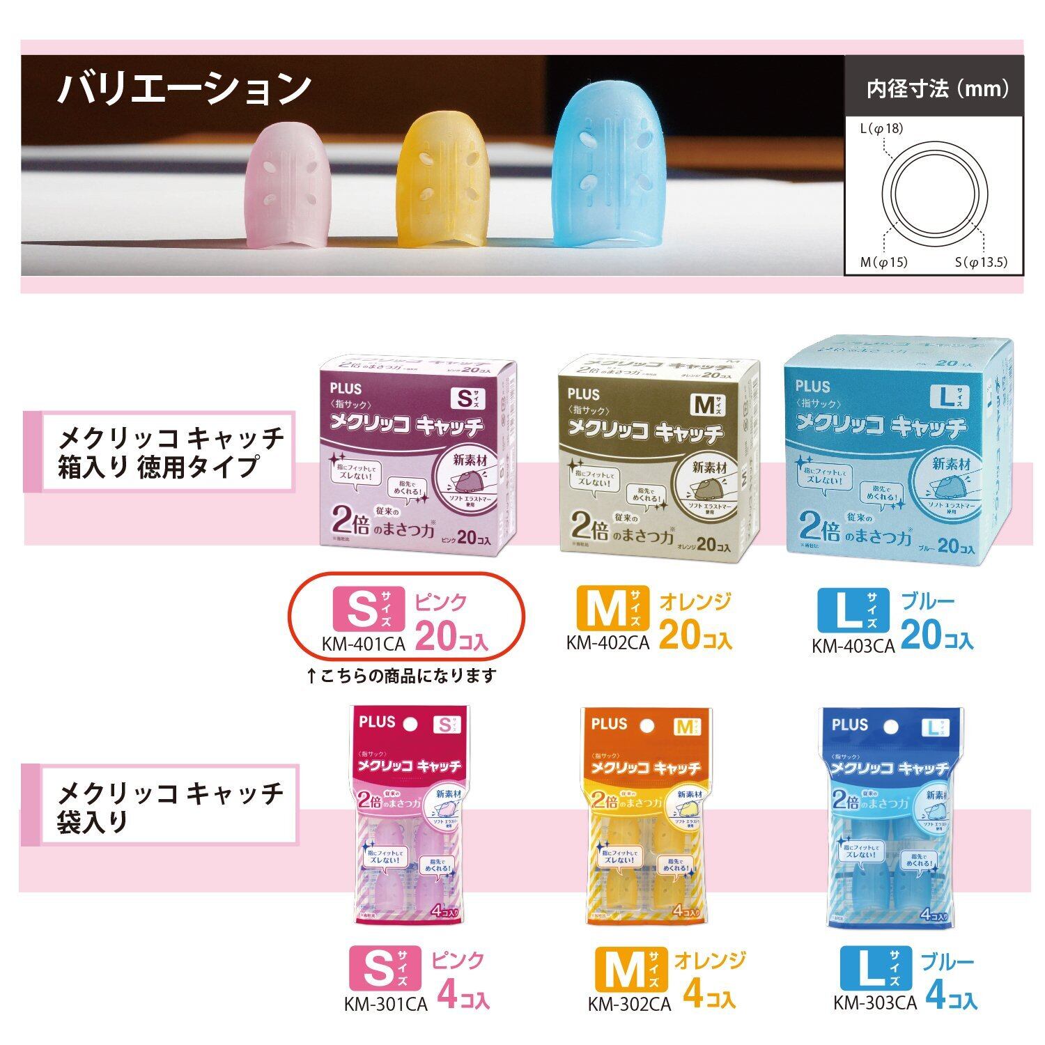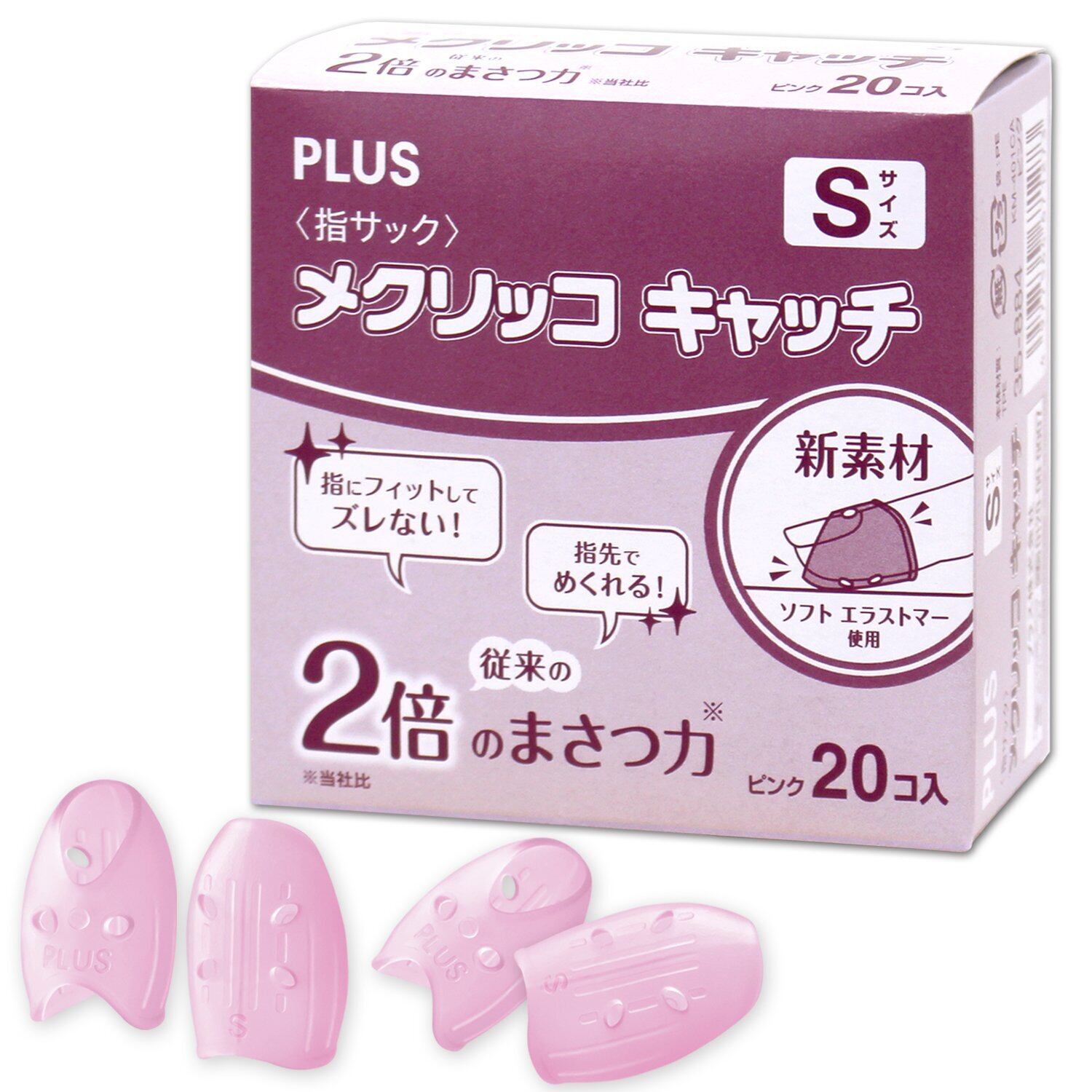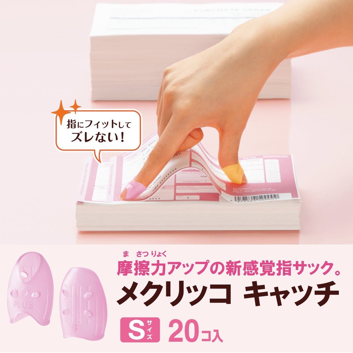 プラス 紙めくり 指サック リング型 メクリッコキャッチ Sサイズ 20個入り ピンク 35-884