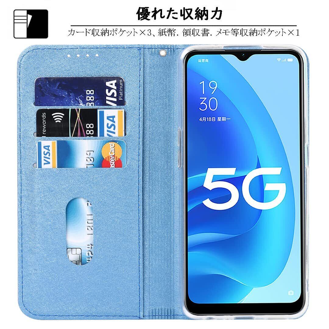 Elick OPPO A55s 5G ケース 手帳型 薄型 高級PUレザー OPPO A55s ケース 手帳型 OPPO A55s 5G 手帳型 ケース マグネット式 ベルトなし ストラップ付き カード収納 オッポ A55s 5G ケース カバー ブルー