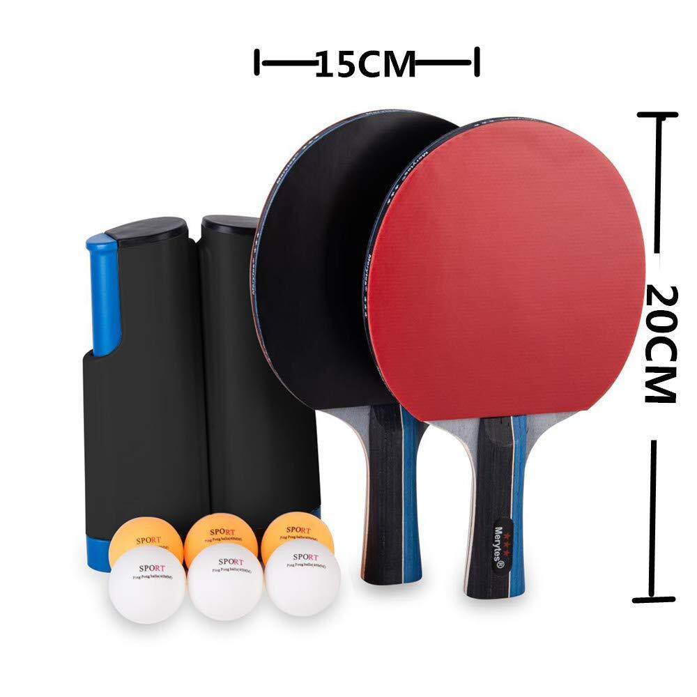 Merytes ポータブル 卓球 ラケット ポータブル 卓球セット ラケット2本 ピンポン球6個 卓球用品 卓球ラケット 卓球ボール