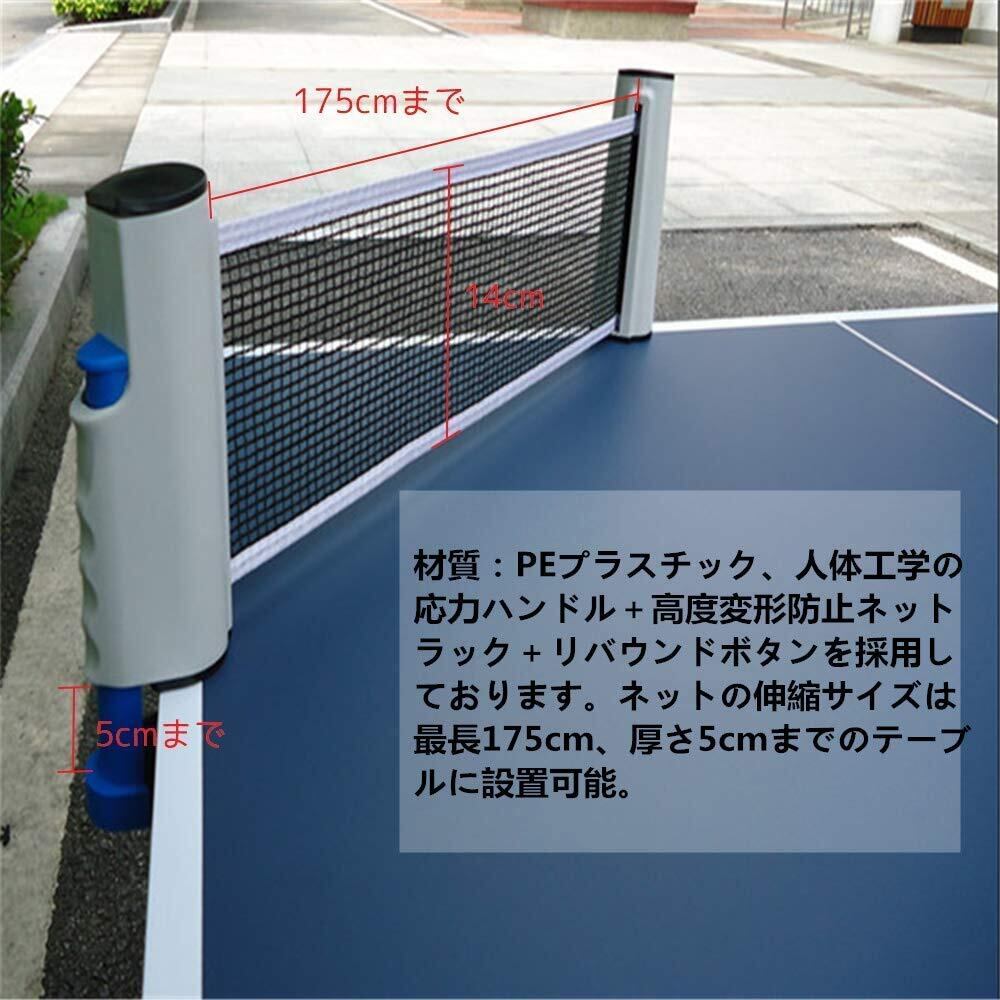 【携帯型伸縮ネットラック仕様】材質:PEプラスチック、人体工学の応力ハンドル+高度変形防止ネットラック+リバウンドボタンを採用しております。ネットの伸縮サイズは最長175cm、厚さ5cmまでのテーブルに設置可能。