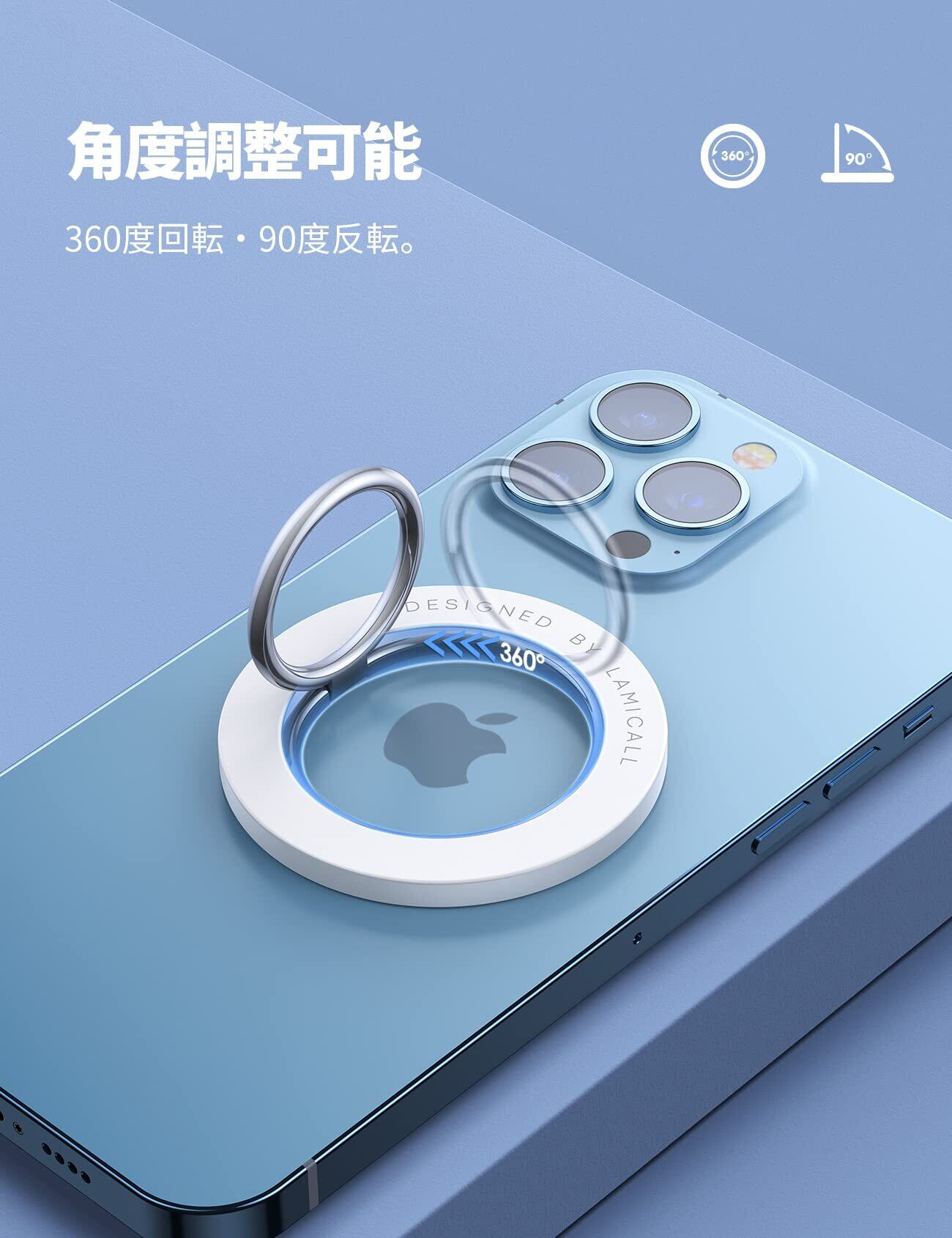 Lamicall MagSafe対応 360度回転式 スマホリング : マグネット式 携帯電話 ホルダー リング マグセーフ バンカーリング 角度調整 スタンド 磁気増強 メタルリング付き 取り外し Magnetic Phone Grip iPhone 17 17 Pro Air 16e 16 Plus 16 pro pro max iphone 15/14/13 Android に対応 ホワイト