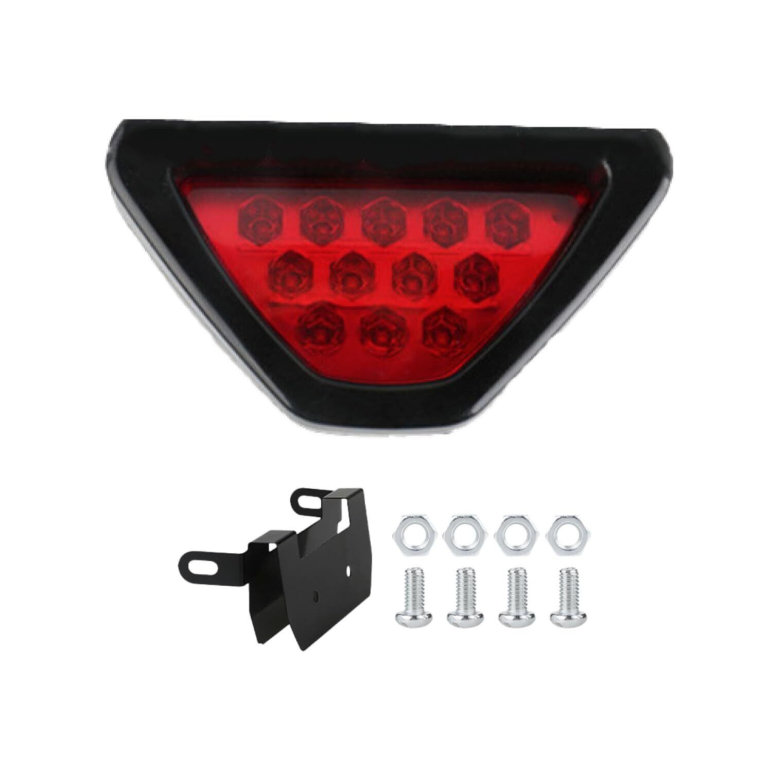 バックフォグ ストップランプ 汎用 品は霧や悪天候時に効果がある汎用ストップランプとなります。バックフォグランプはF1の様なテールランプデザイン、尾灯に逆三角形の12連のLED発光により、愛車をカスタマイズしスタイリシュにドレスアップし、お車の外観を引き立てることができます!!