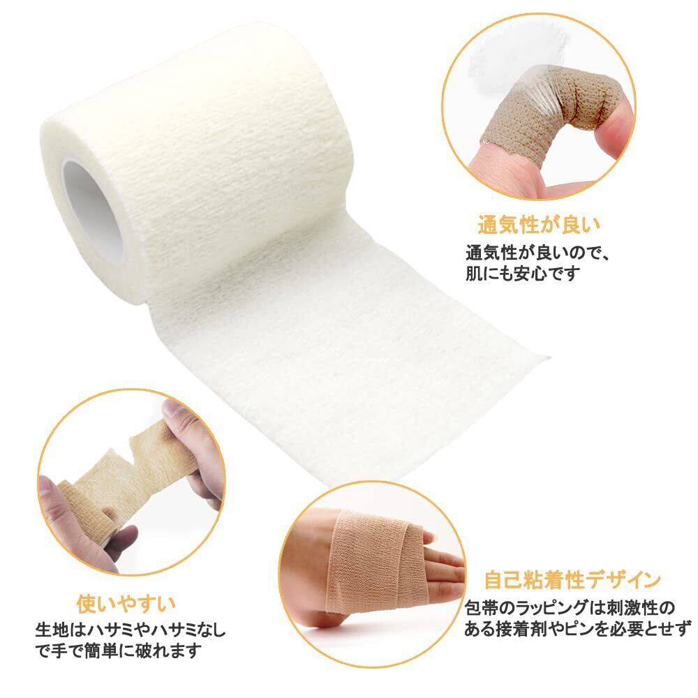 DFsucces 包帯 自己粘着包帯 弾性 テーピングテープ スポーツテープ 不織布凝集 伸縮性 通気性 敏感肌に適しています 多機能 家庭用 (ホワイト, 5.0cm*4.5m)