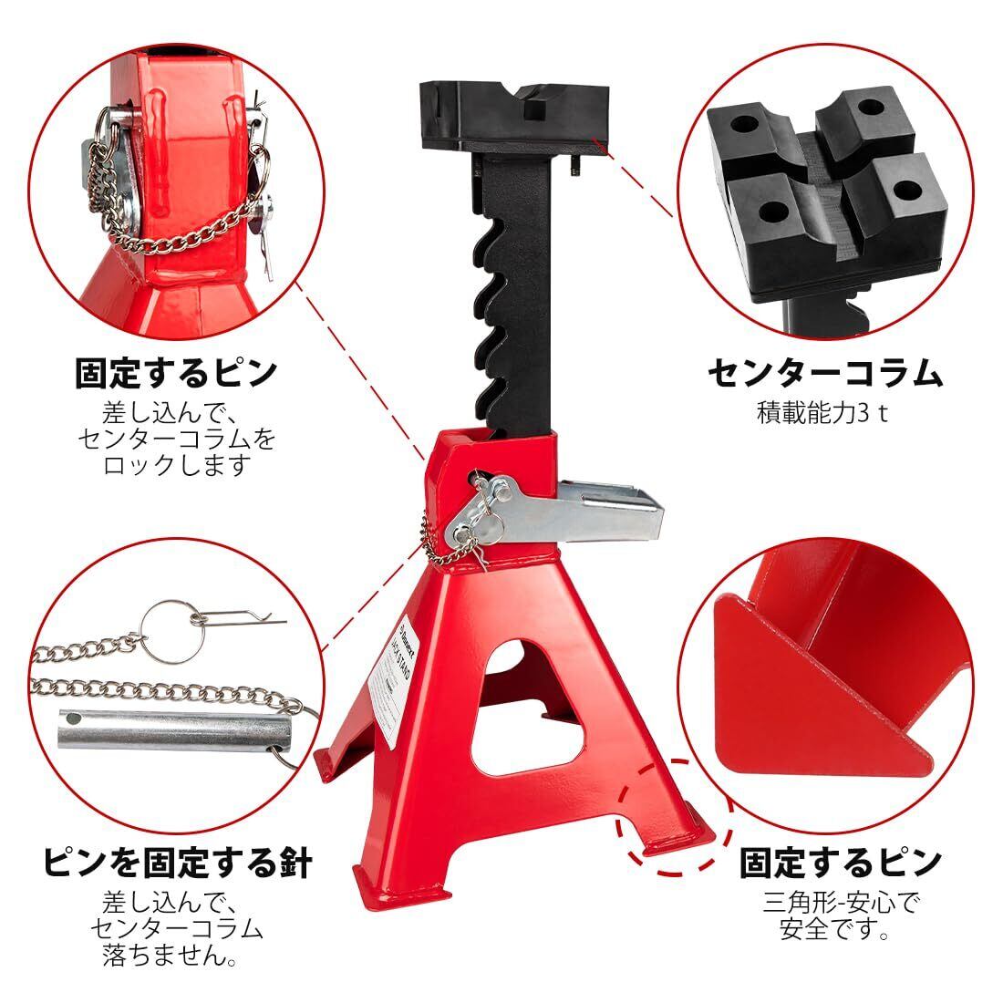 Donext ジャッキスタンド 3t 2個セット 高さ6段調節 最低位290mm/最高位425mm ダブルロック式 ラバーパッド付 レッド