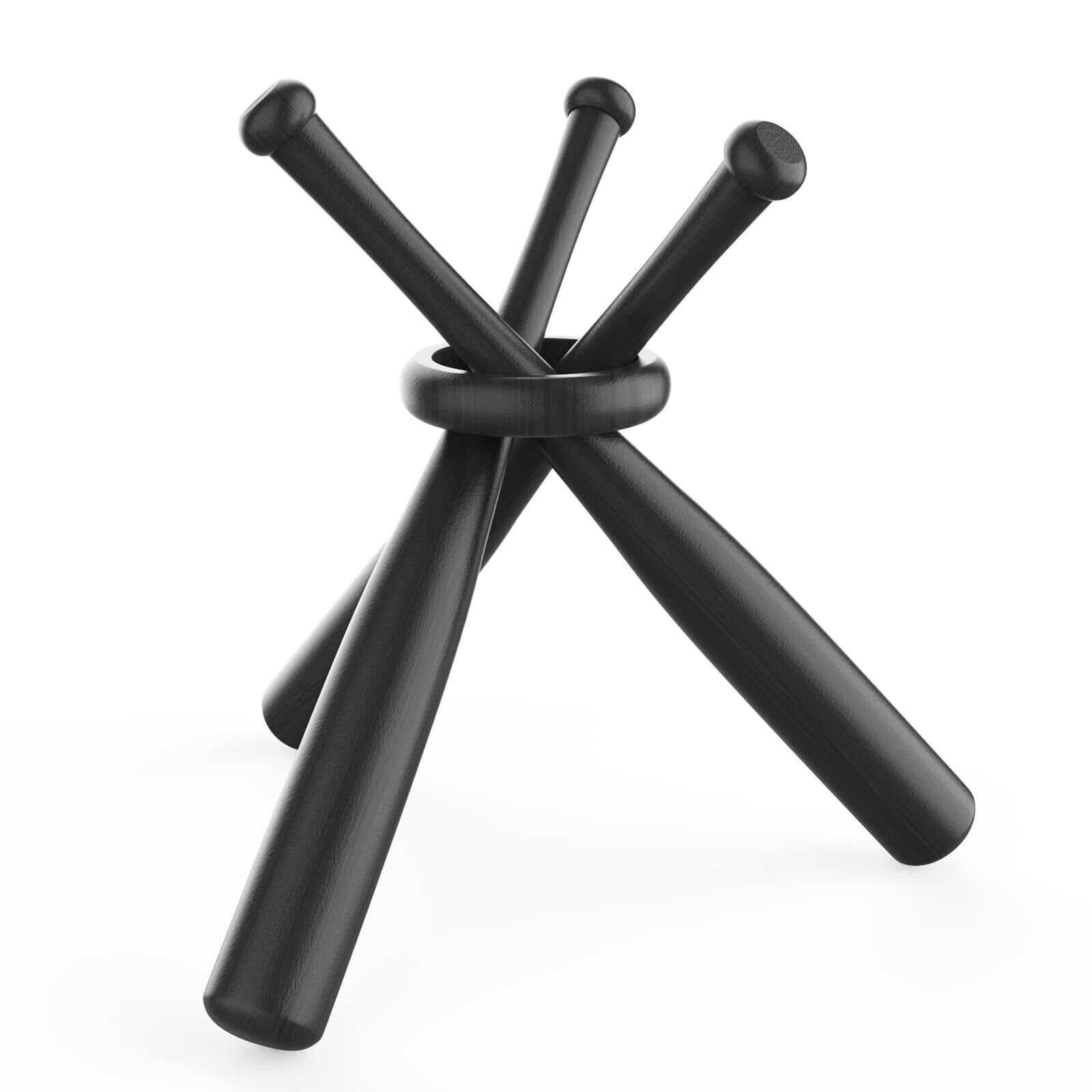 野球飾りバット サインボール置き 野球ボールスタンド ベースボールホルダー ディスプレイスタンド コレクション 木製 (黒)