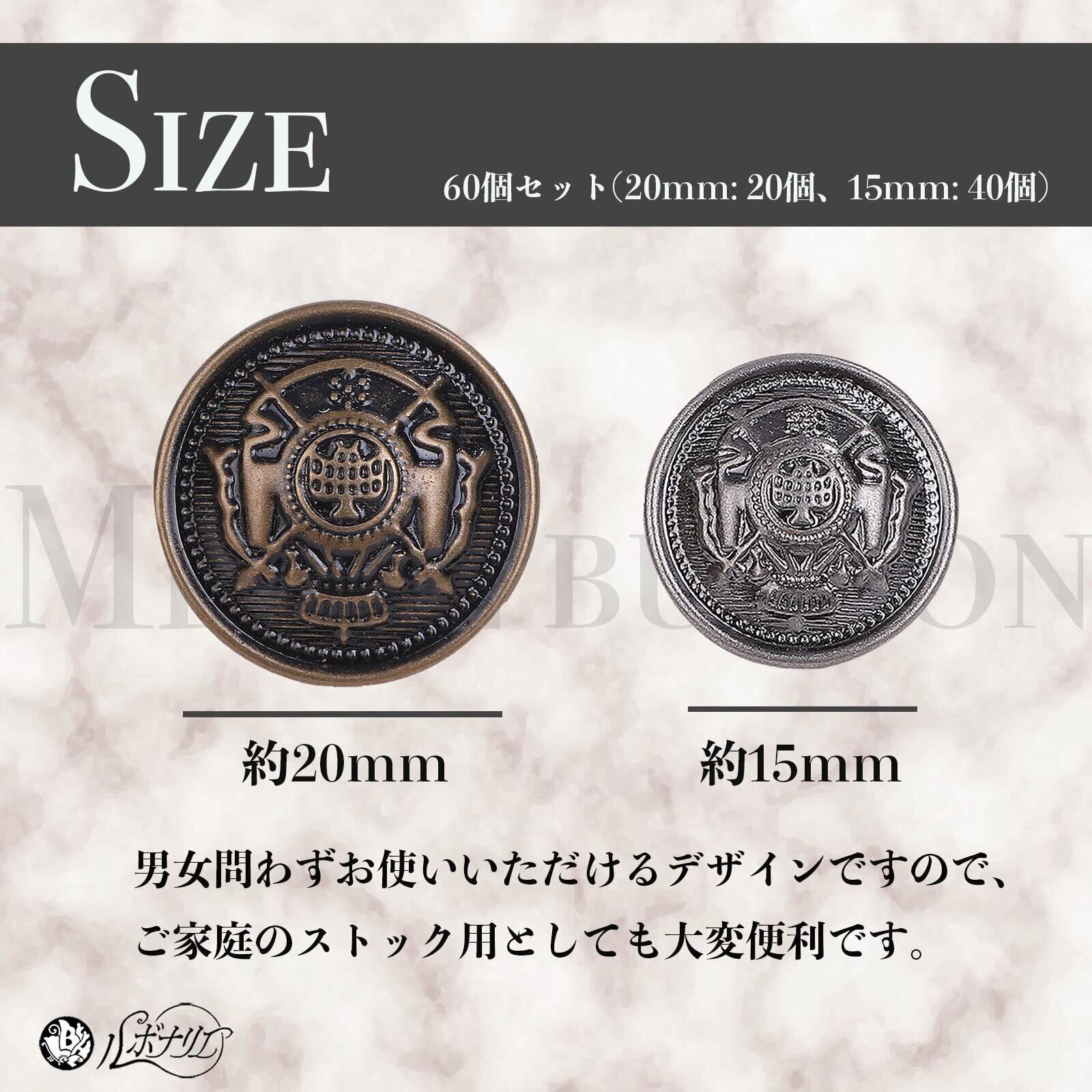 ルボナリエ メタルボタン アンティーク レトロ コート用ボタン ジャケット ブレザー アクセサリー 20mm 15mm (シルバー 60個)