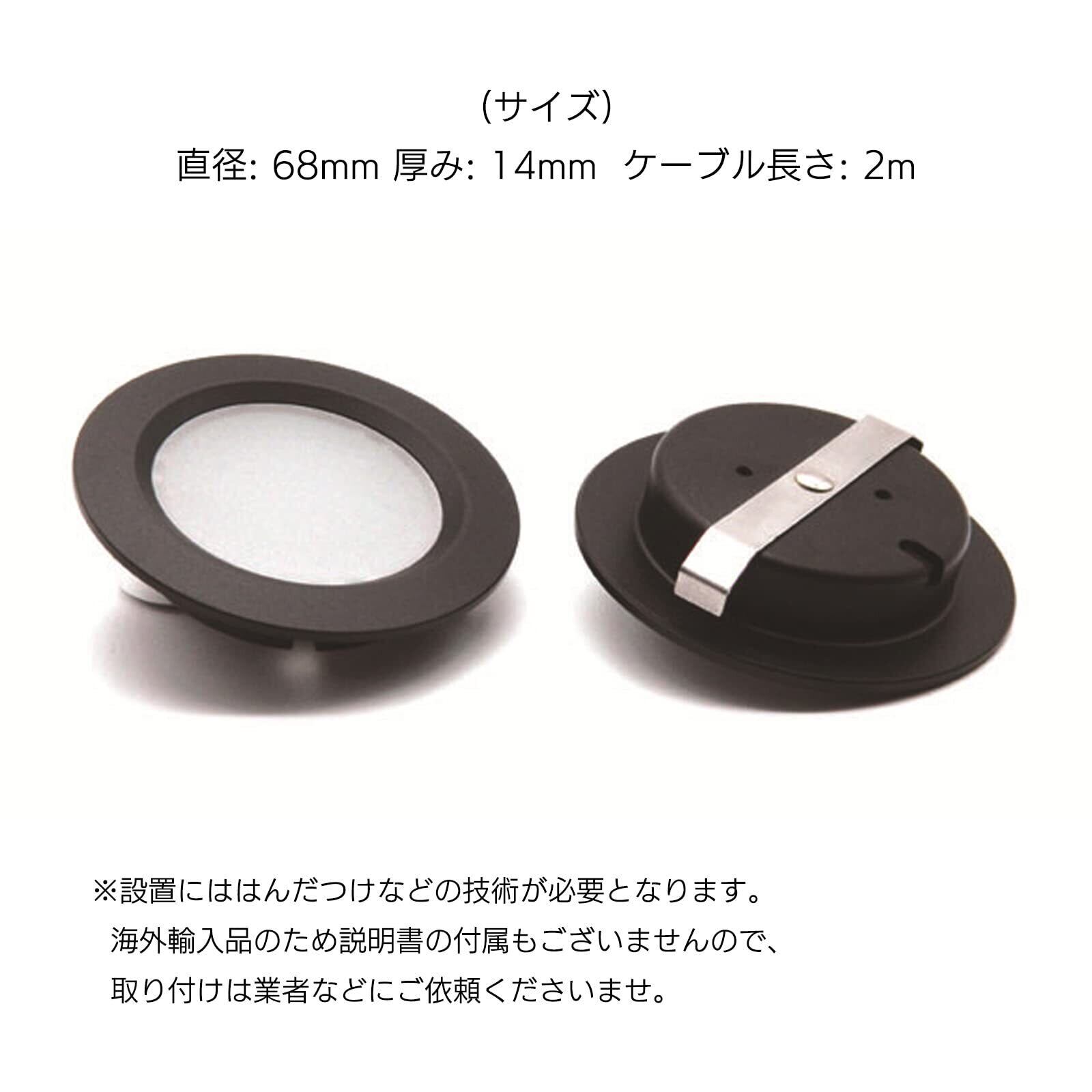 本製品は海外製品のため、輸送中に細かい傷が生じる場合があります。また、切断面に多少のバリが残っていることがあるため、取り付け前にご確認ください。直径は68mm、厚みは14mm、ケーブル長さは2mとなっています。高品質なアルミニウム製のハウジングを採用し、放熱性にも優れているため、長時間使用しても発熱を抑えられます。