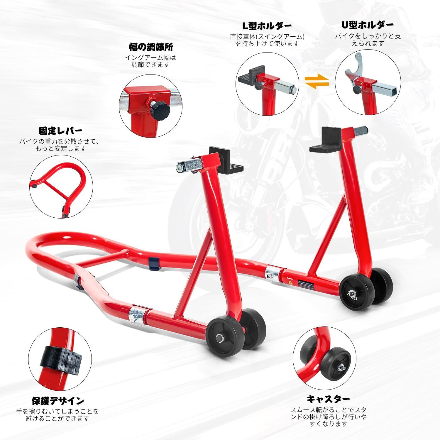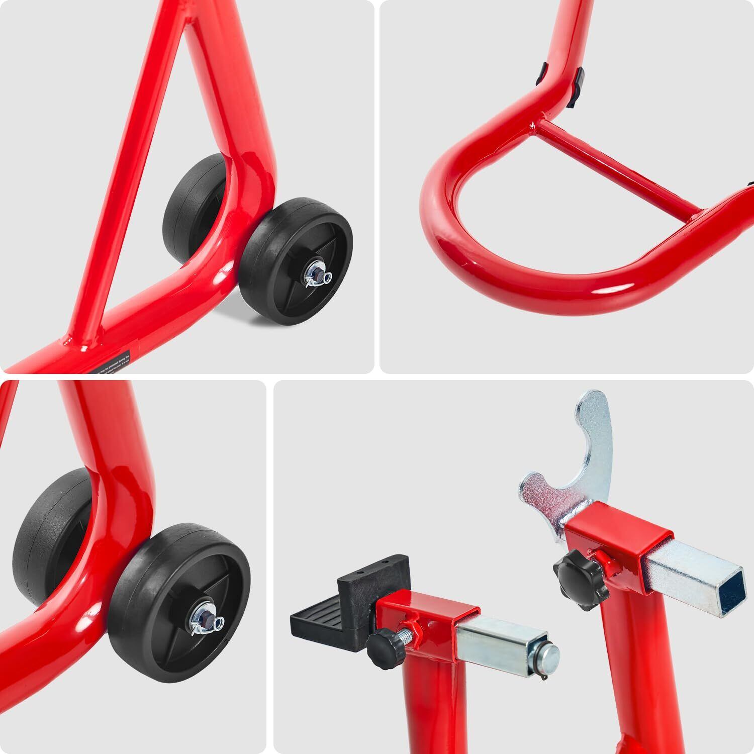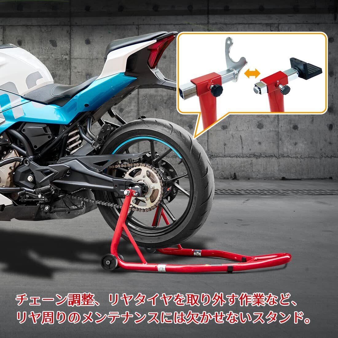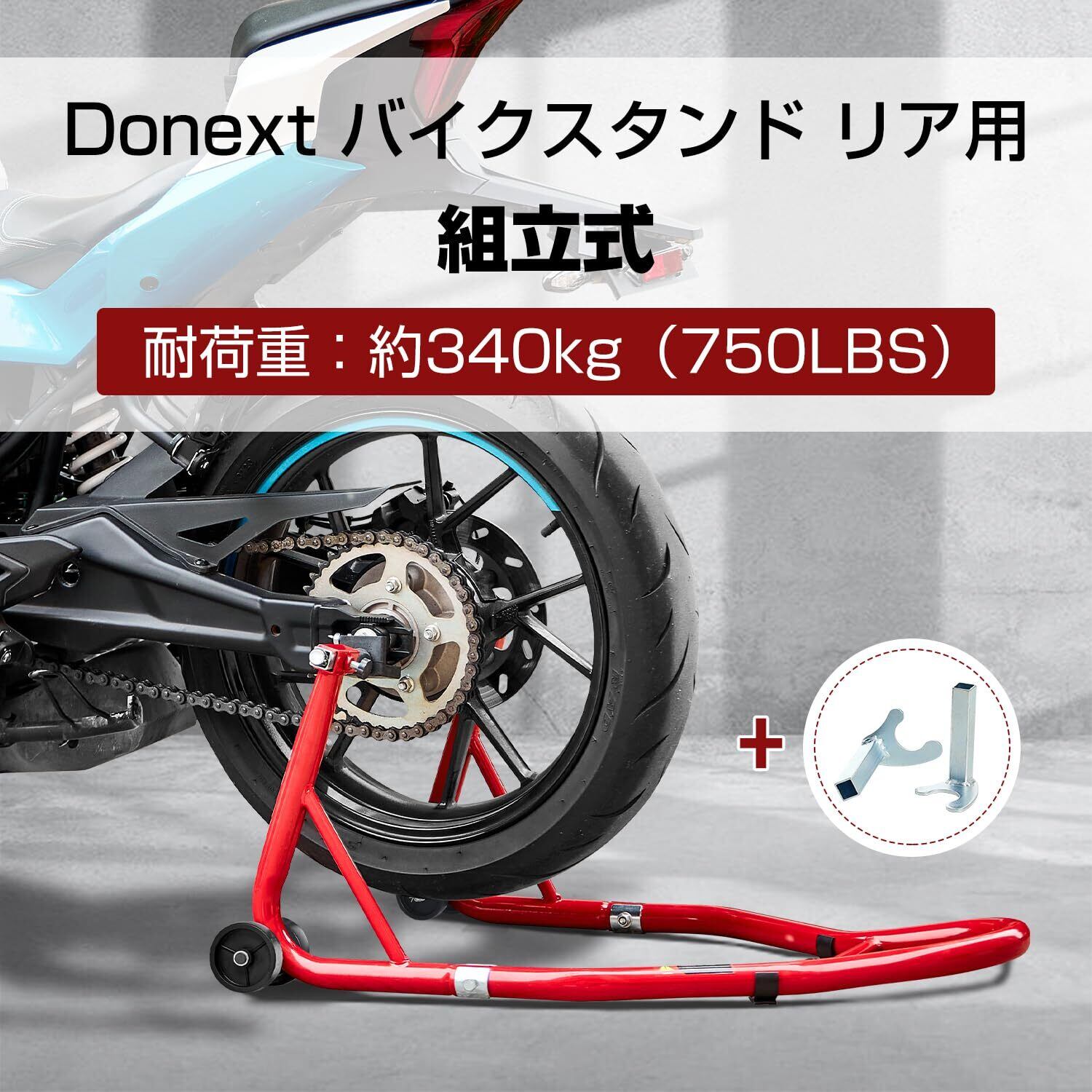 Donext バイクスタンド リア メンテナンススタンド 後輪用 整備用 耐荷重340kg 750LBS キャスター付き L型&U型2種類付き レッド