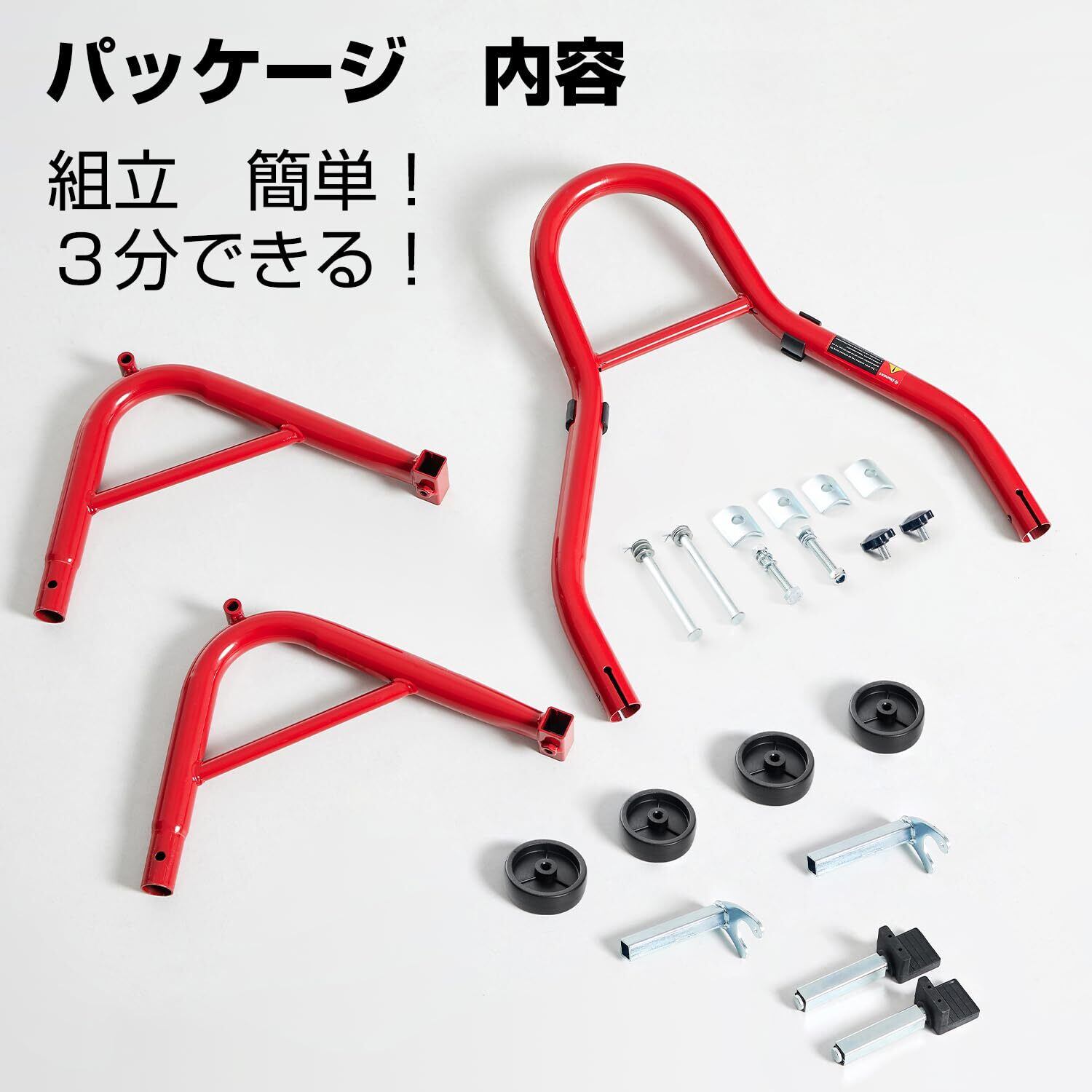 【注意事項】1.車種やバイクの仕様により使用できない場合があって、ご購入の前に寸法と積載能力ちゃんと確認してください。2.ご使用の際は長時間の積載は必ず避けてください。3.ご購入日より、何かご質問やご意見がございましたら、お気軽にこちらのアフターサービスまで、ご連絡いただきます様お願い致します。4.製造中、パイプの中に鉄粉が入っているのですが、使用上問題ありません。組み立てる際に取り除いてご使用ください。