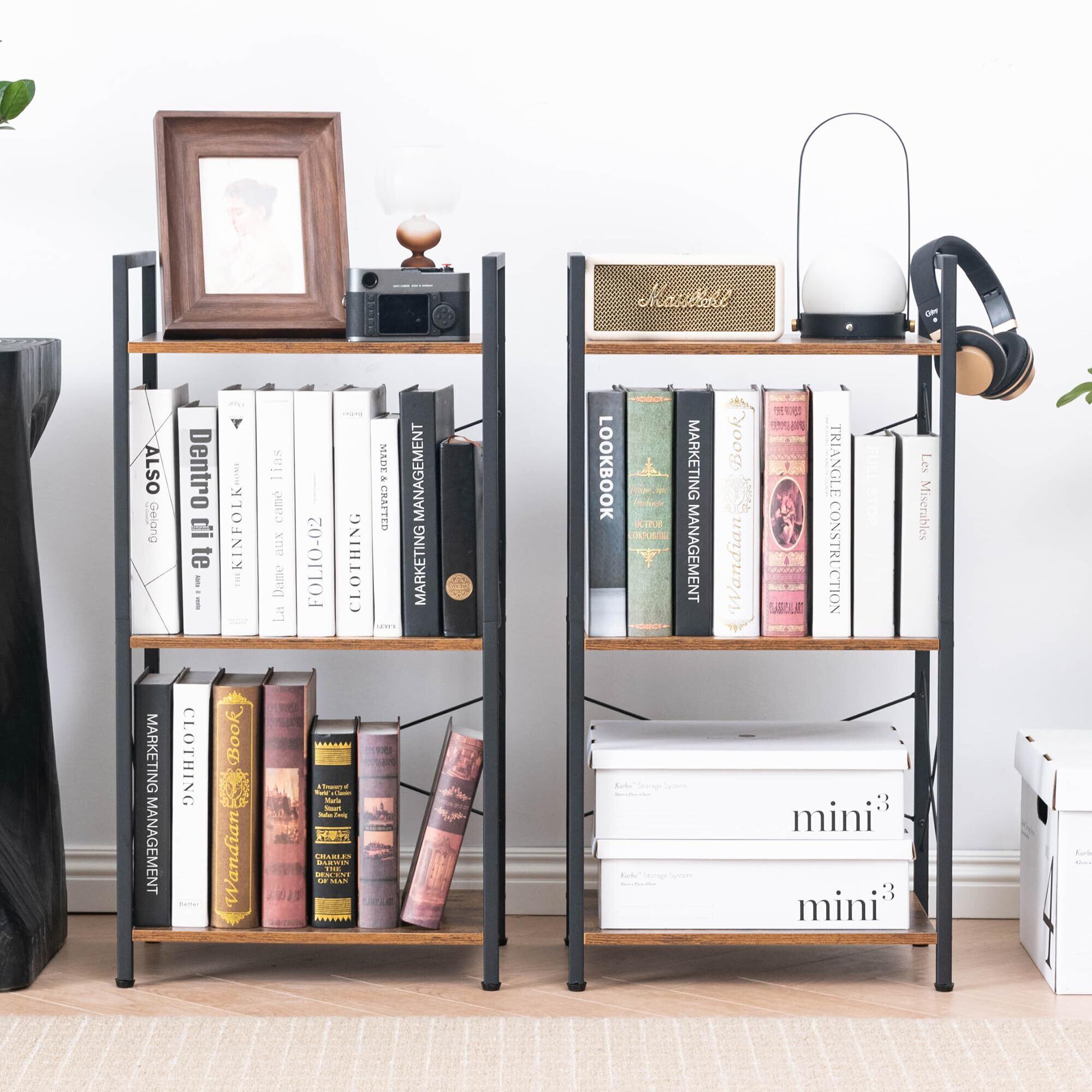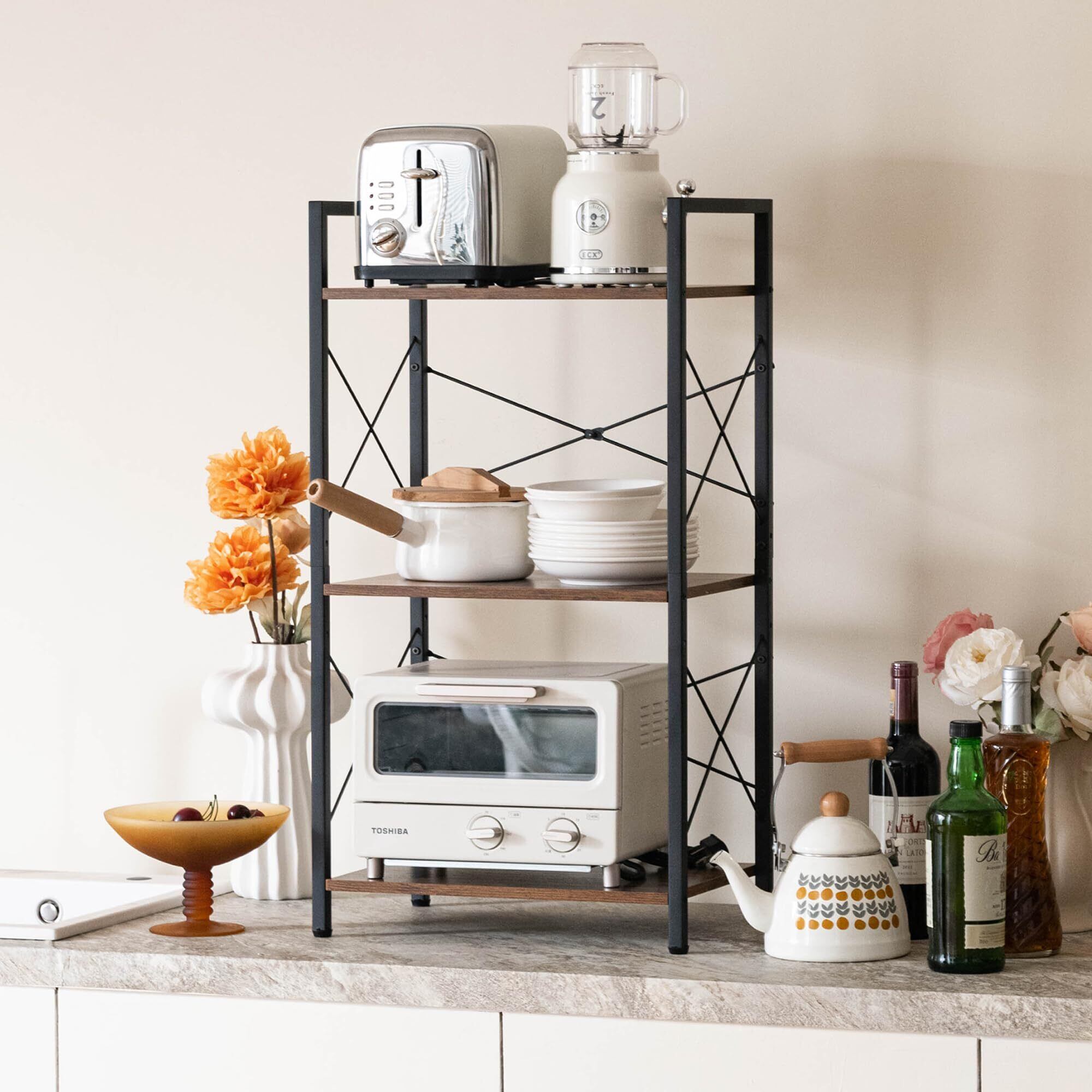 HCHQHS キッチンラック おしゃれ オープンシェルフ 本棚 幅42×奥行28cm×高さ80cm 3段 組立品 3段 ディスプレイ 食器棚 スリム 隙間収納 木目 組立簡単