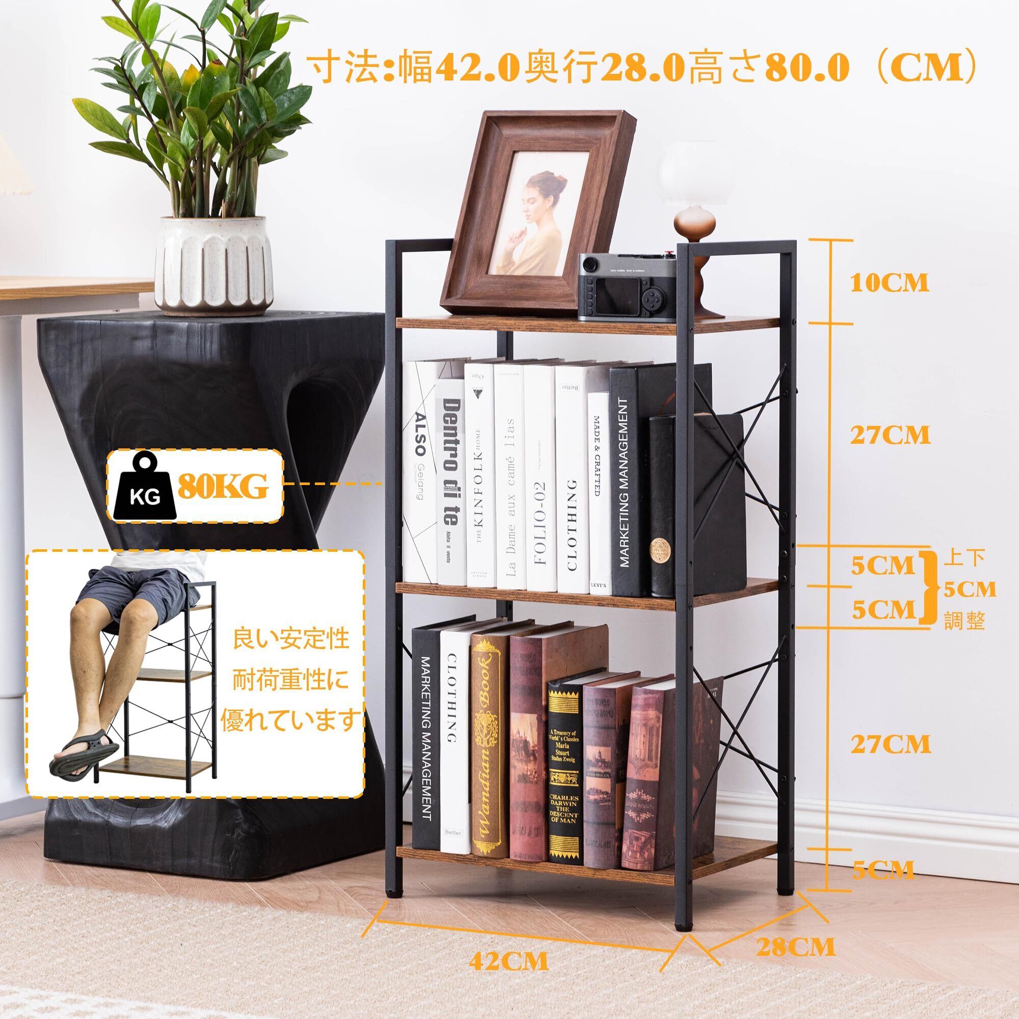 【多機能棚ラック】様々な場所で適用し、スペースの限られたバルコニーにも置きやすい3段式らっく。レンジラック、食器収納、玄関棚、絵本棚、書類棚、漫画棚、雑誌ラック、本収納棚などとして使用することができます。サイズ:幅(42) ×奥行 (28)×高さ(80) cm。