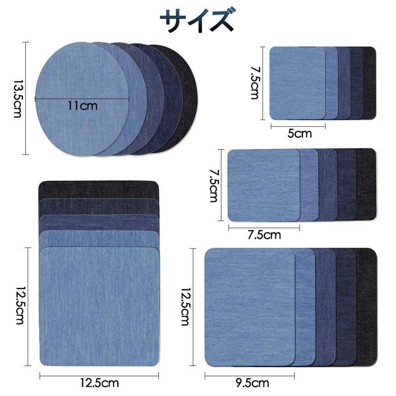 YFFSFDC デニムパッチ 25枚セット 貼付パッチ 5色5サイズ アイロンワッペン ジーンズ 補修布 デニム補修キット アイロン接着 DIY 手芸