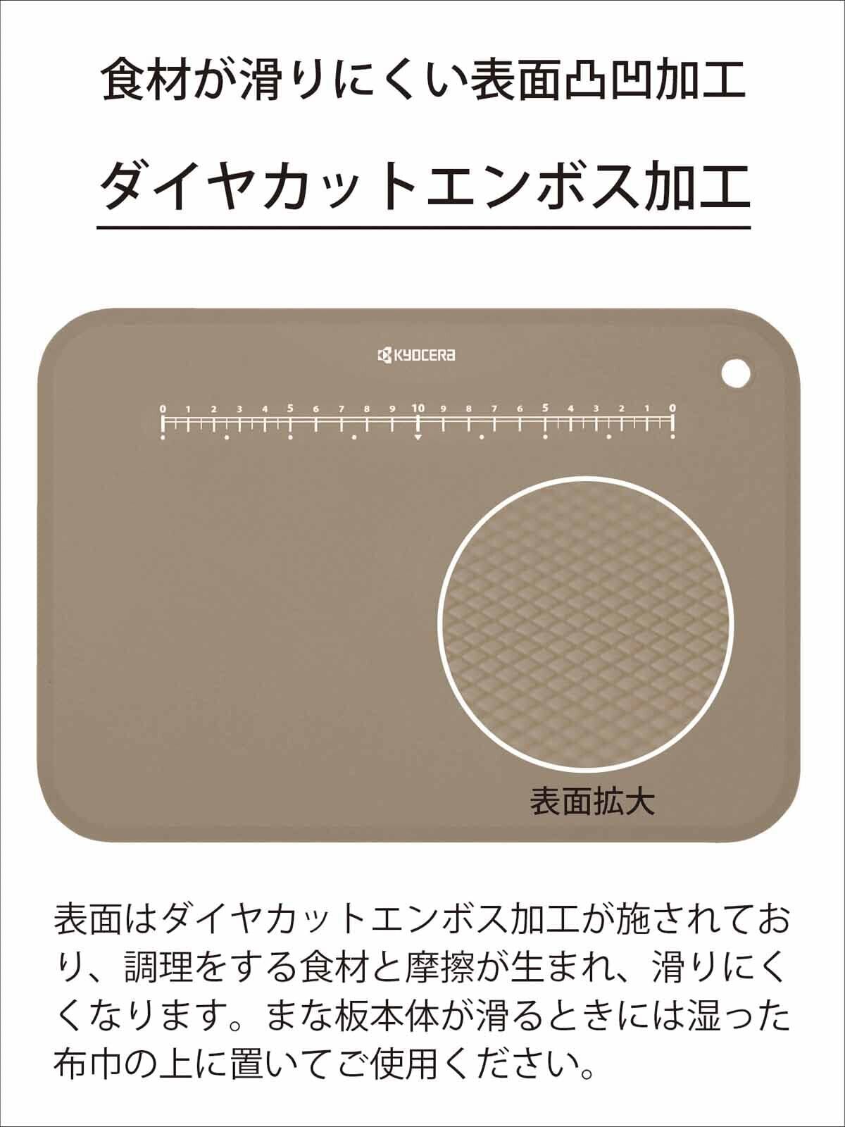 【すべりにくい加工】表面にはダイヤカットエンボス加工が施されていて、食材がすべりにくい