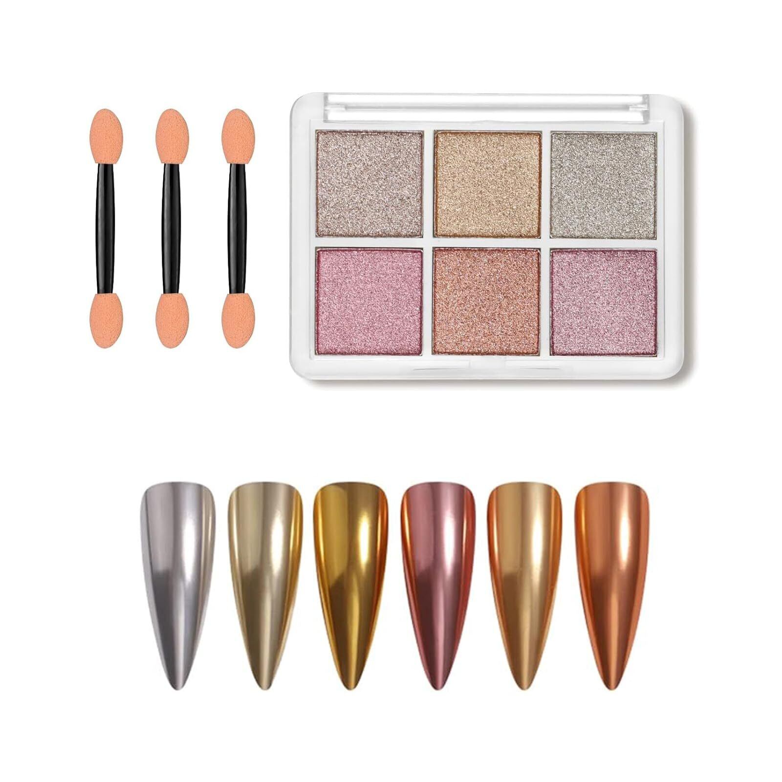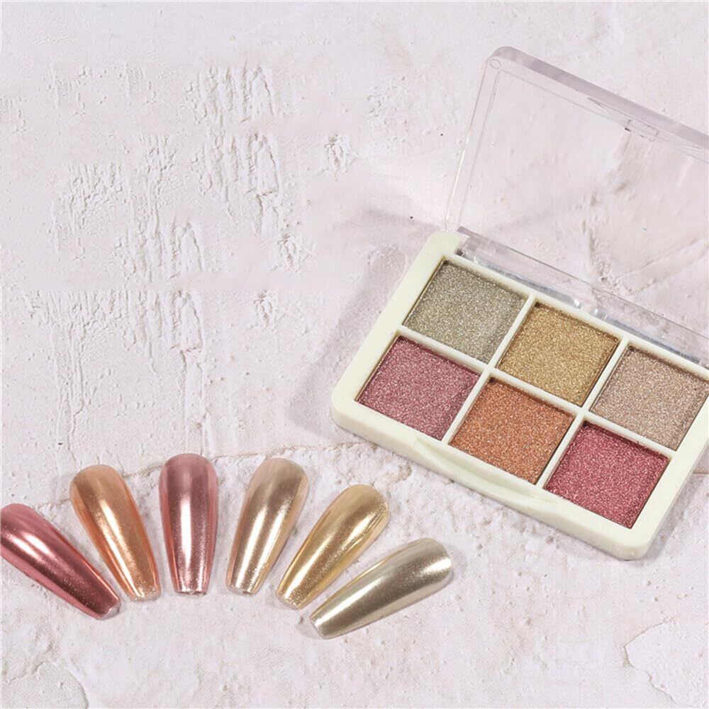 Phyxiul オーロラパウダー ミラーパウダー 固形 ネイルパウダー 6色パレット ミラーネイル パウダー ネイルアート レジン カラー ネイルパーツ 自宅DIY 极細 スポンジチップ付き (ミラーパウダー)