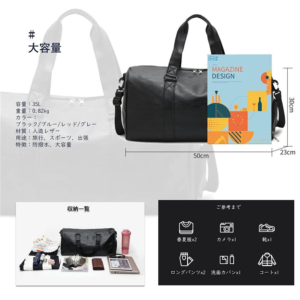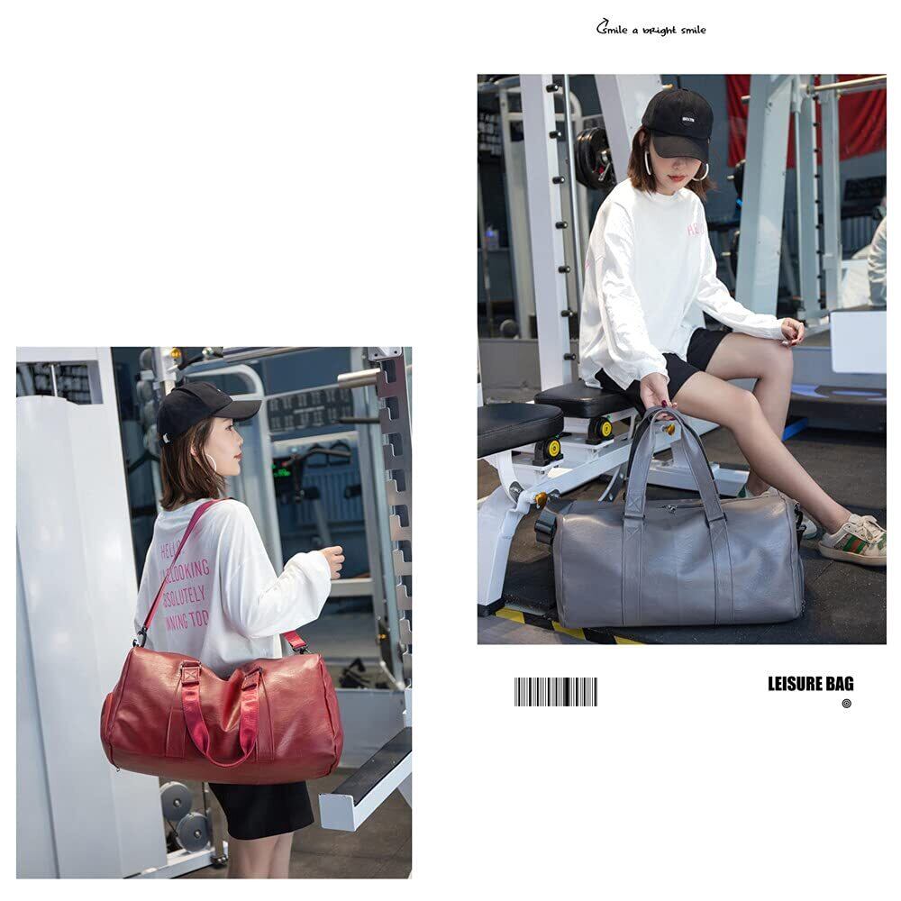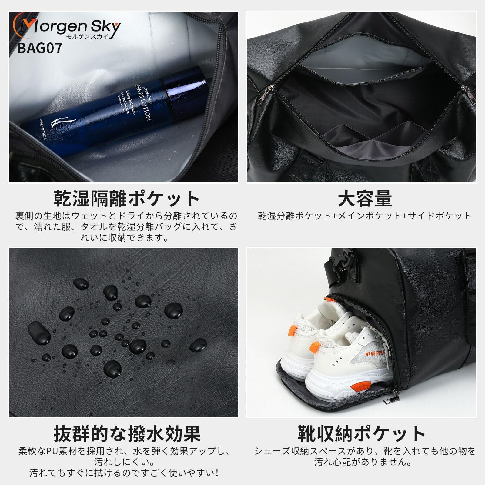 【MORGEN SKY】ボストンバッグ スポーツバッグ 皮革 男女兼用 大容量 旅行カバン 出張 シューズ収納 ジム レディース メンズ 軽量 撥水 BAG07 (GRAY)